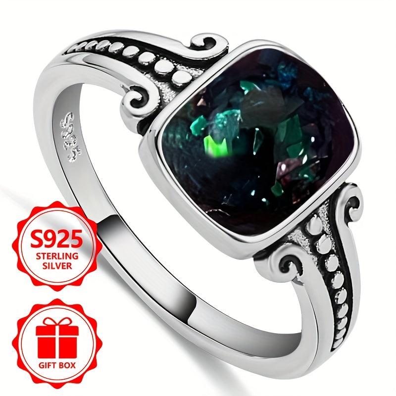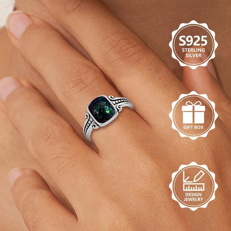Elevate your style with this 925 sterling silver ring featuring a square synthetic opal. Perfect for daily wear, parties, and as a holiday gift for family and friends.