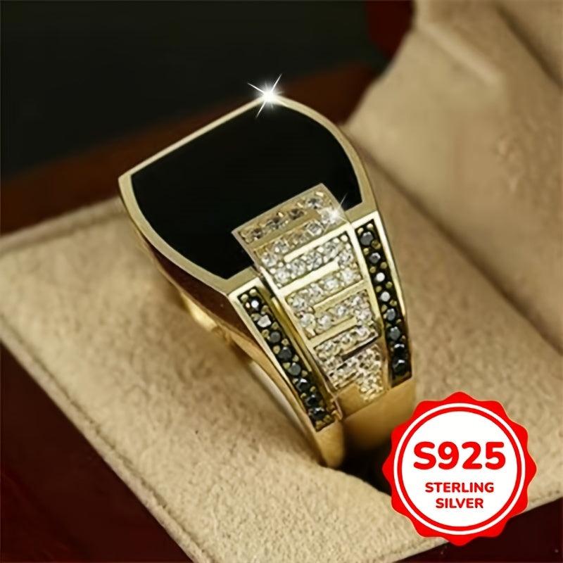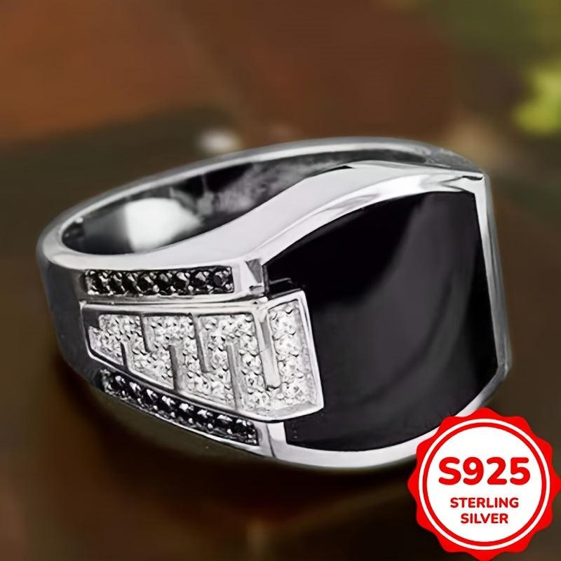 This 925 sterling silver ring features a square shape with synthetic zirconia inlay, perfect for adding a touch of hip hop punk style to your daily casual wear or party outfits.