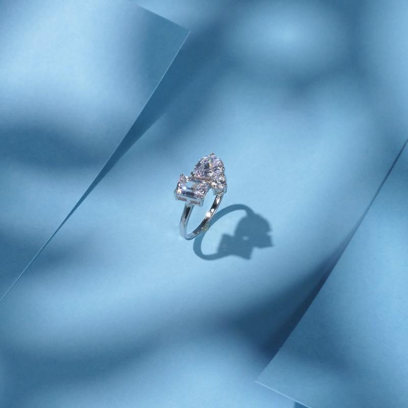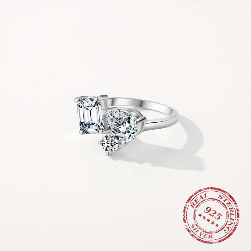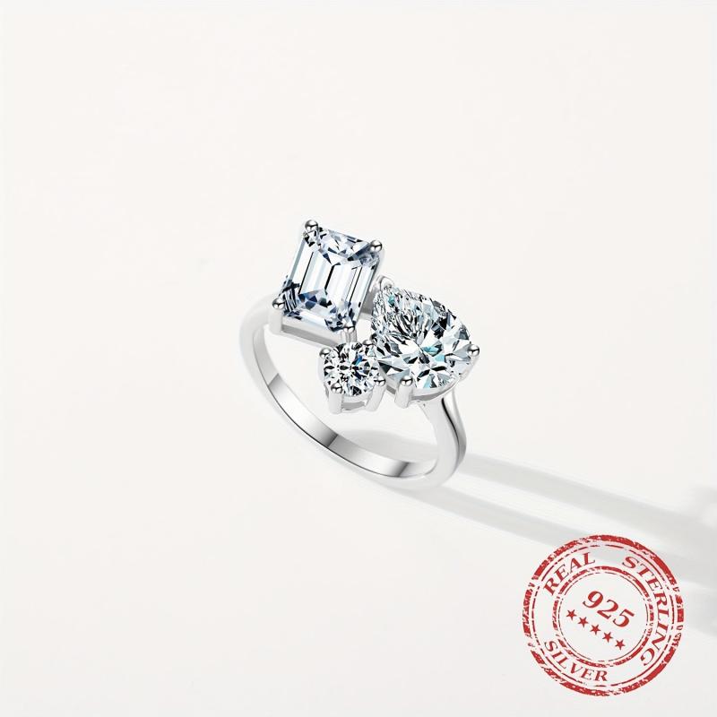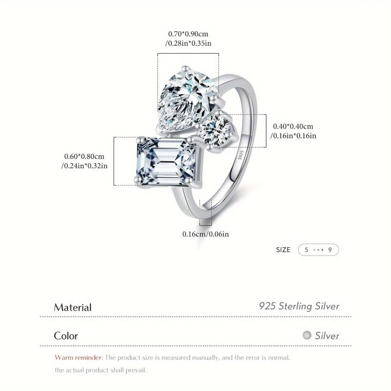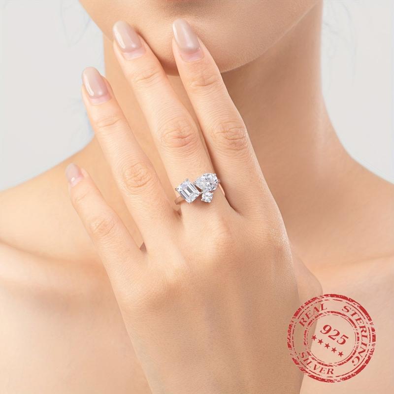 Stunning 925 sterling silver ring featuring a geometric design with synthetic zirconia that is perfect for weddings, vacations, and everyday wear. Available in multiple sizes.