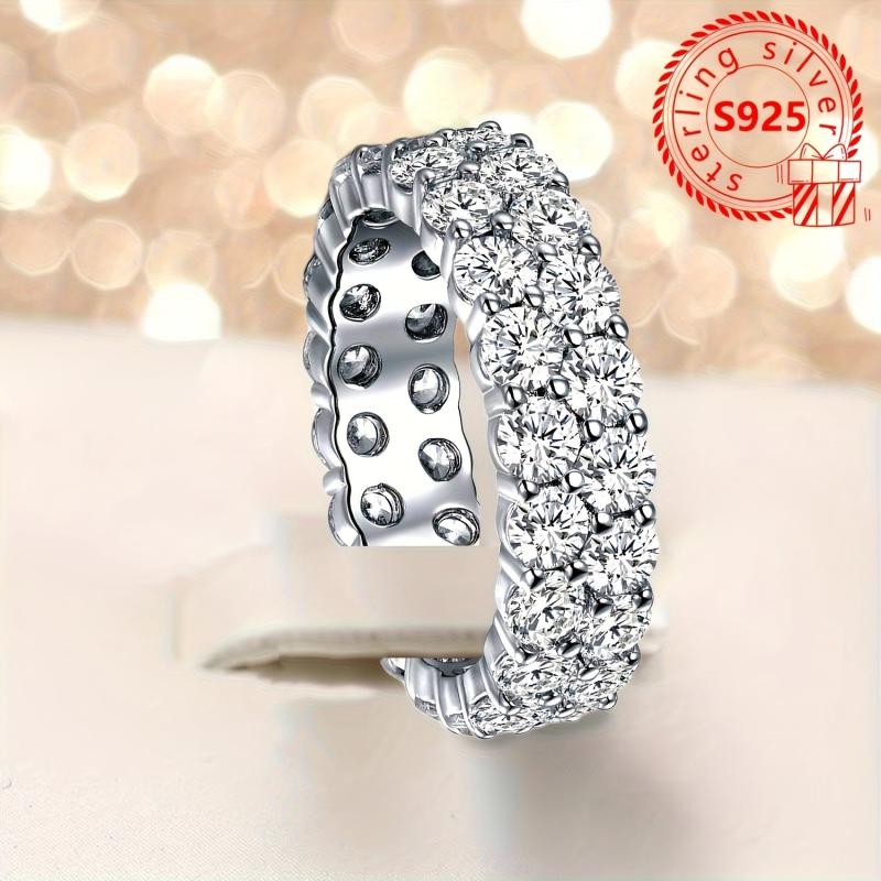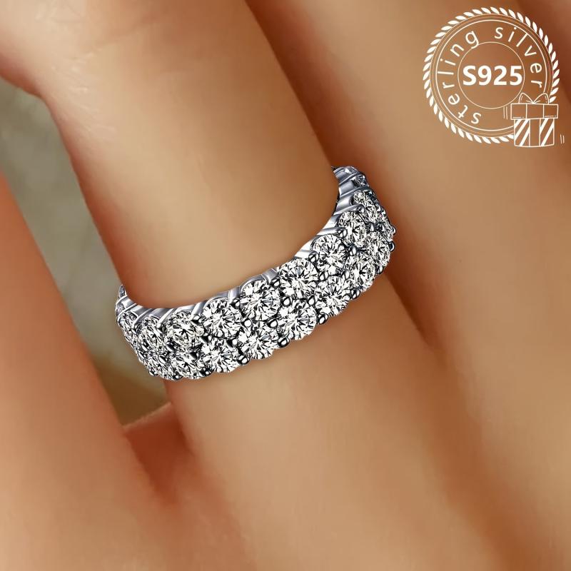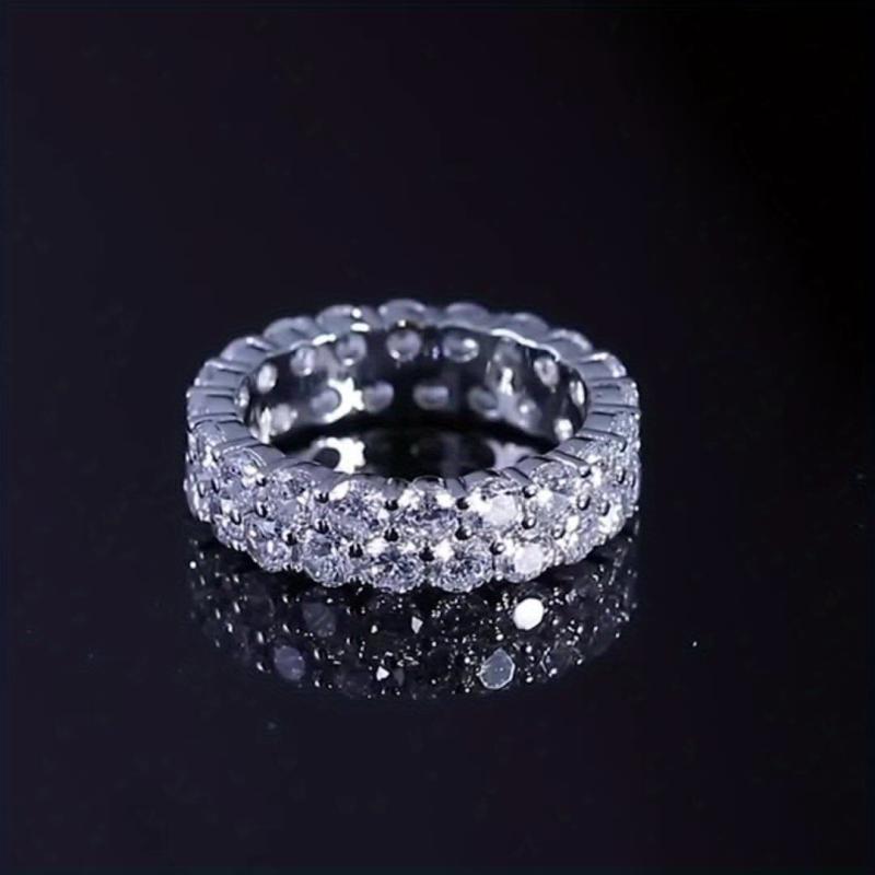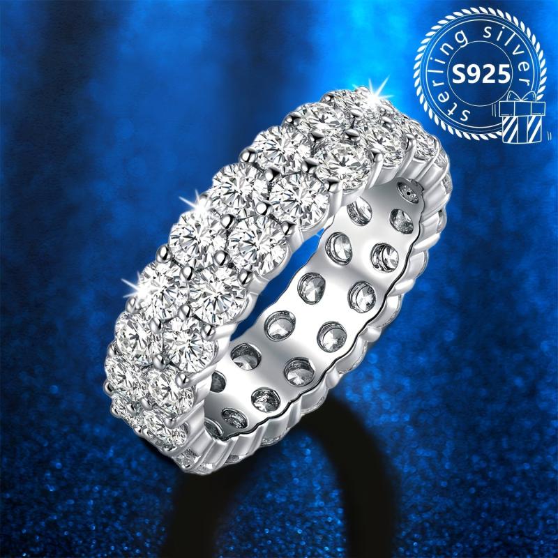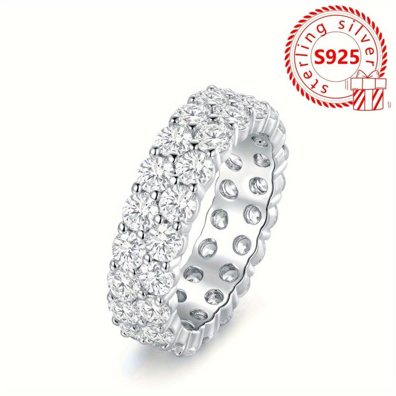 Elevate your look with this lightweight and fashionable 925 silver ring featuring a minimalistic double row design with oxidized synthetic cubic zirconia, perfect for casual wear.