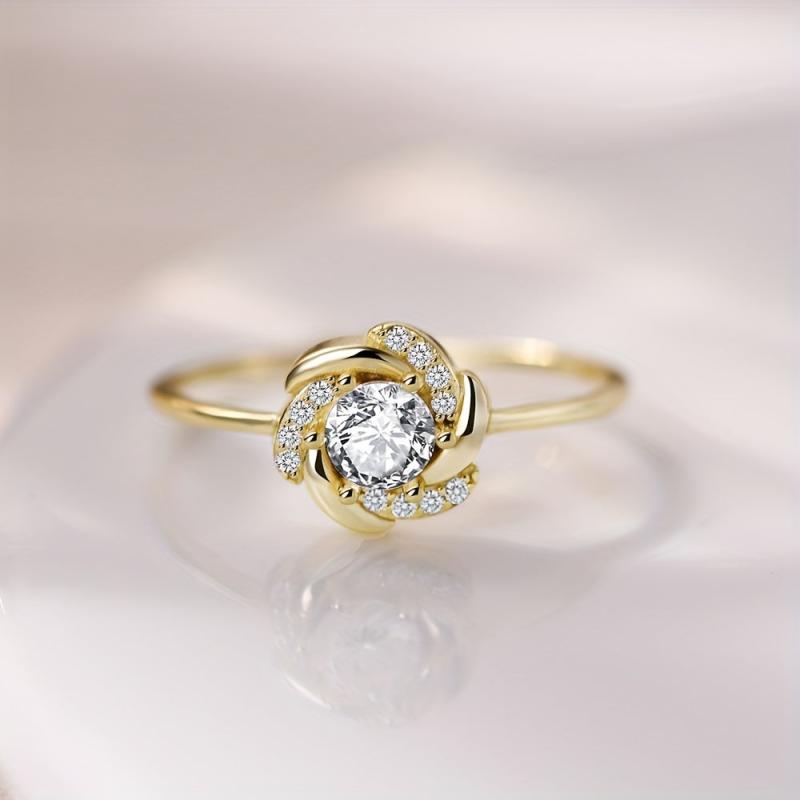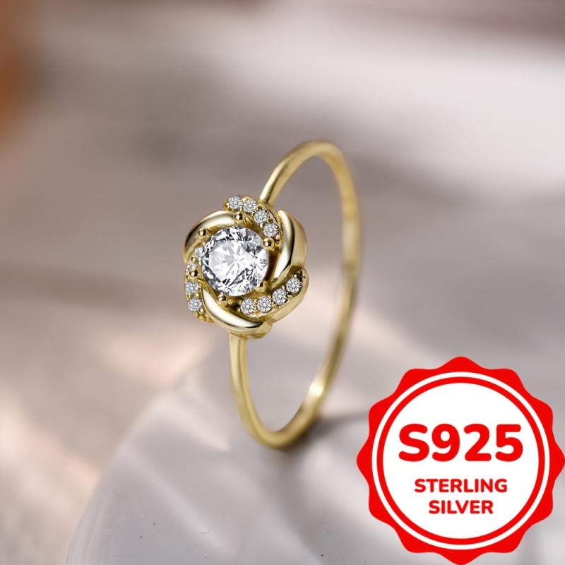 A stunning rose-shaped ring crafted from 925 silver and adorned with sparkling zirconia stones, weighing around 2.1 grams.