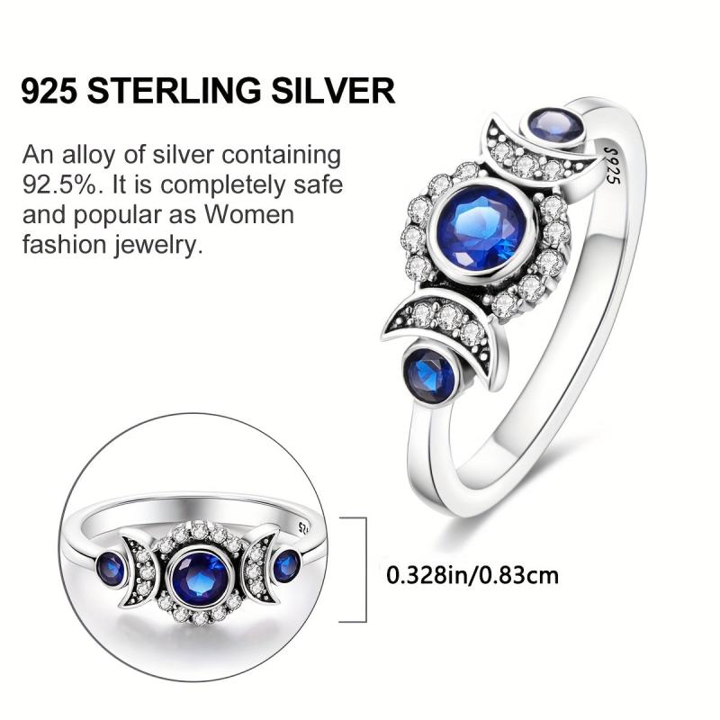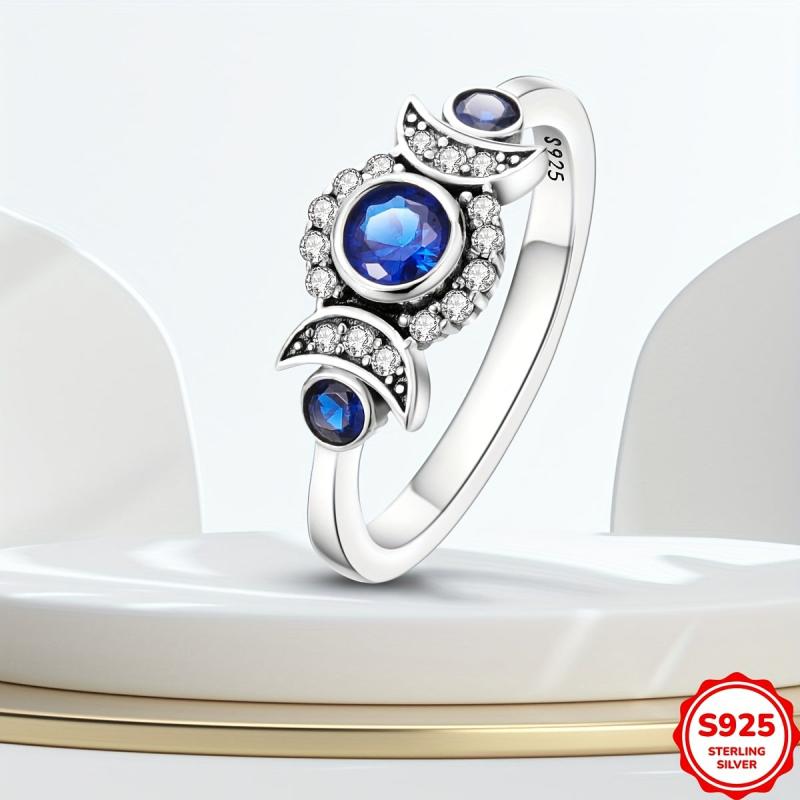 Elegant ring crafted from 925 sterling silver with a shimmering moon design, perfect for weddings and special occasions.