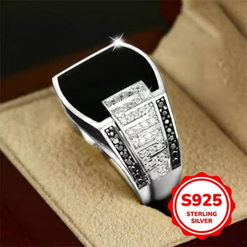 925 silver ring with synthetic zirconia, perfect for parties or casual wear. A hip hop style ring that adds personality to your outfit.