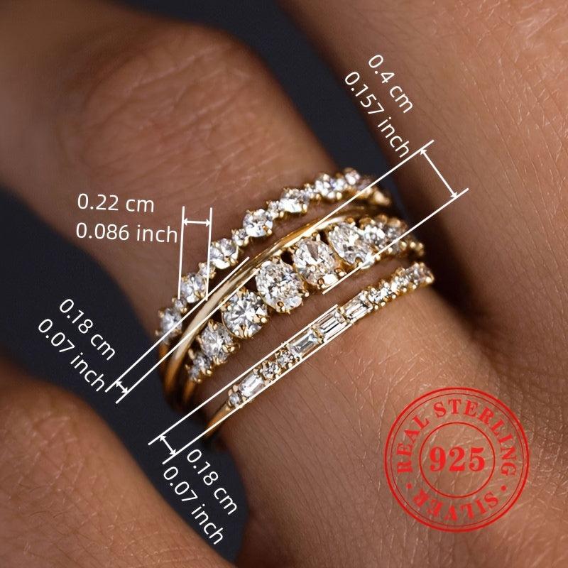 Elevate your vacation style with this 4pcs set of 925 sterling silver stacking rings featuring pave cubic zirconia. Perfect accessory for women.