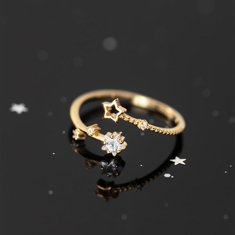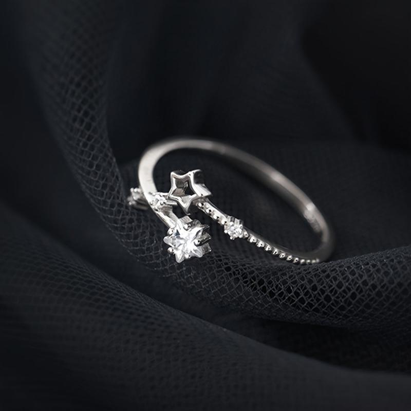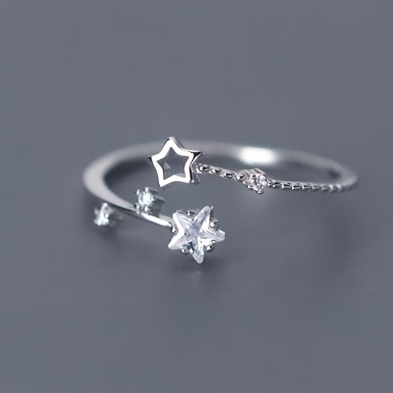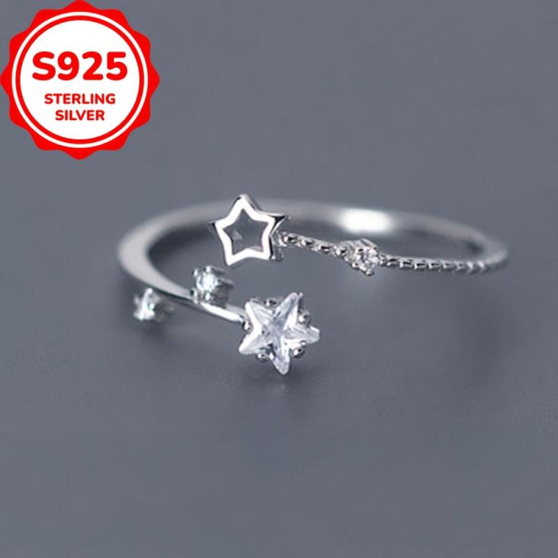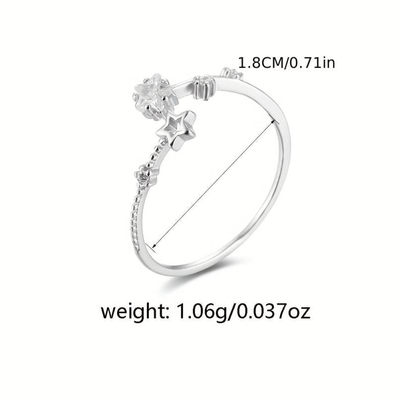 Elevate your style with this 925 sterling silver star open ring featuring synthetic zirconia decoration, perfect for daily dressing. Weighs 0.87g. Ideal for Christmas gifting.