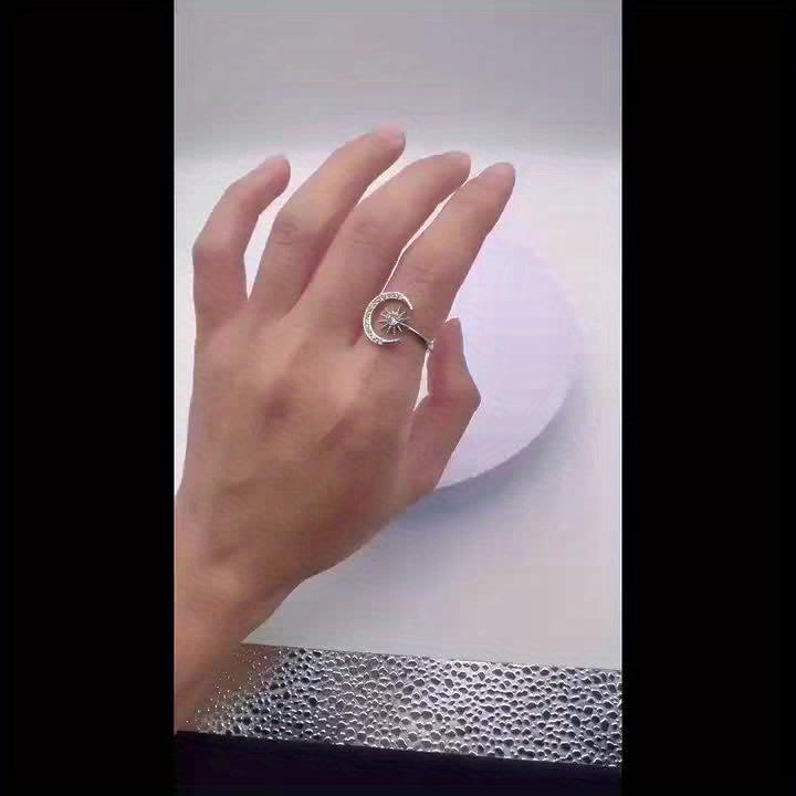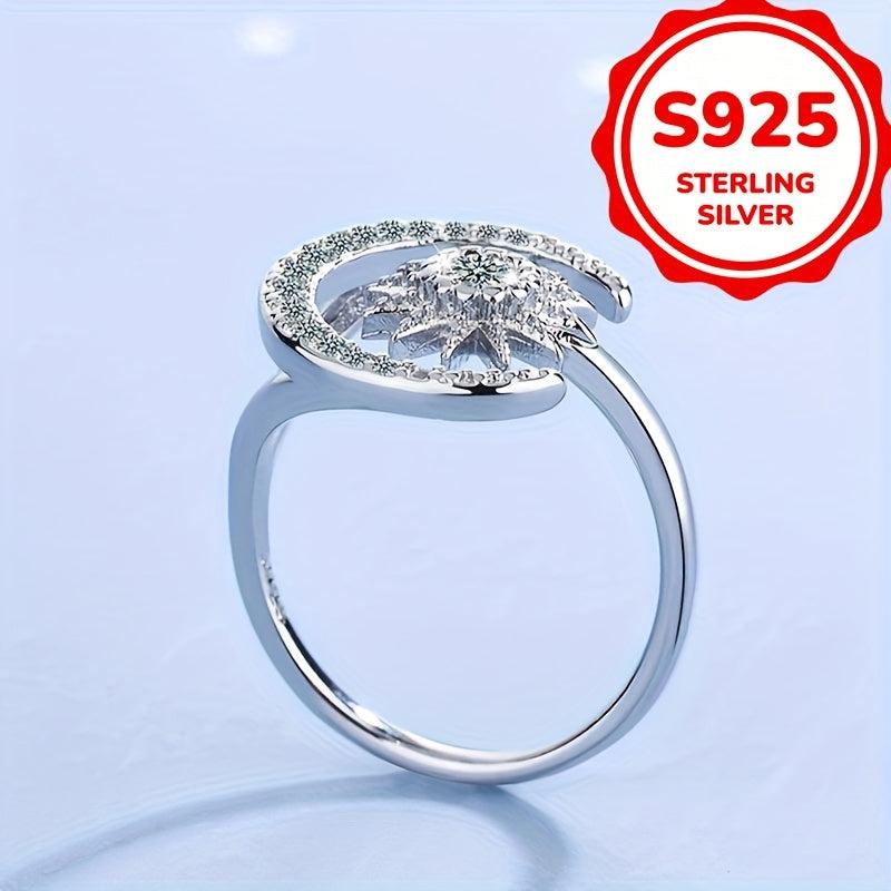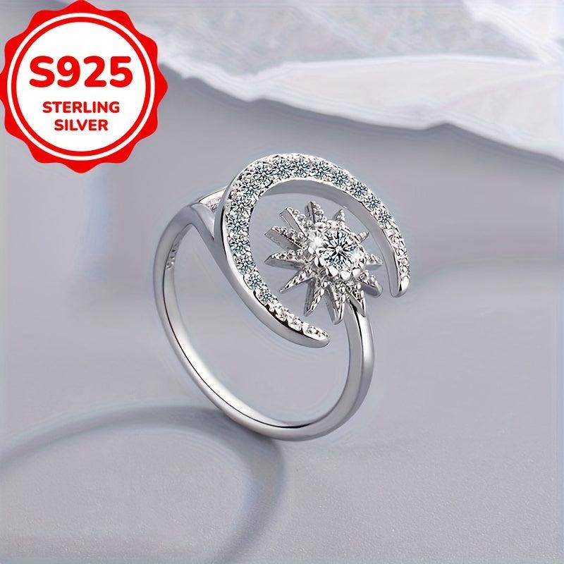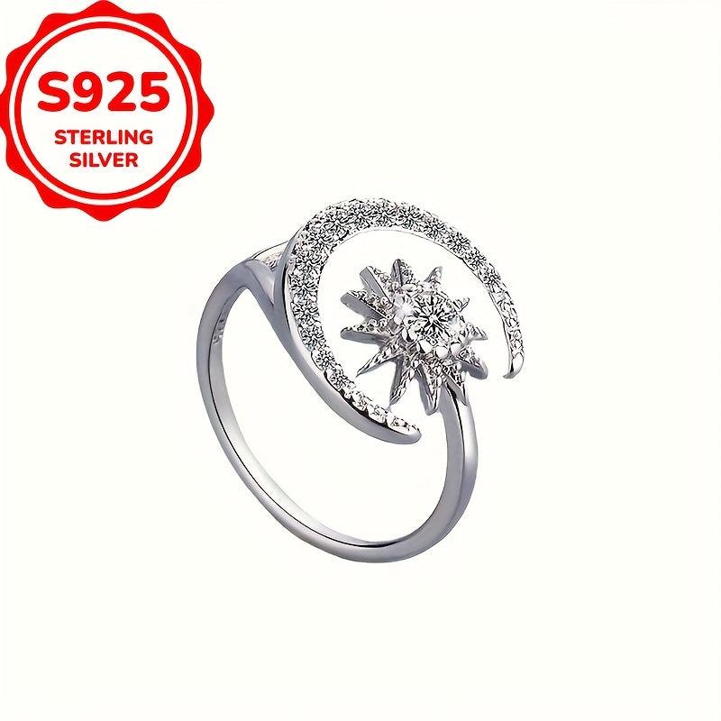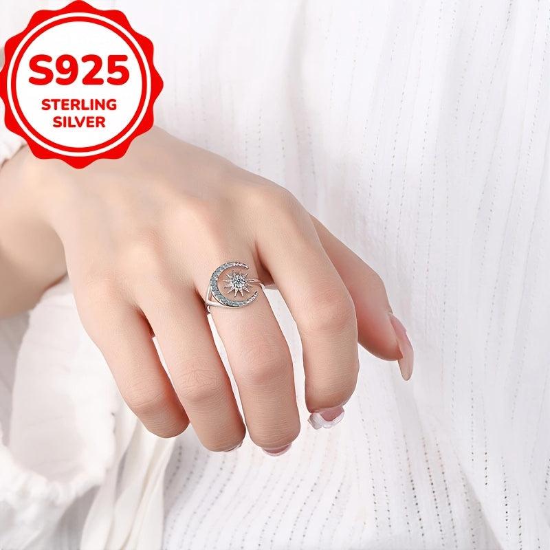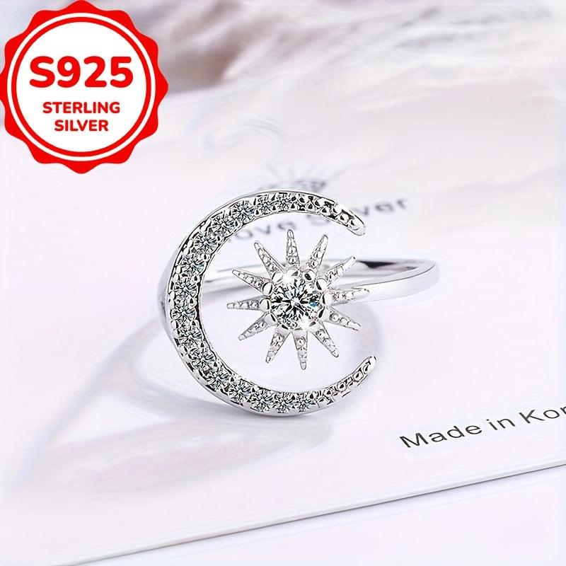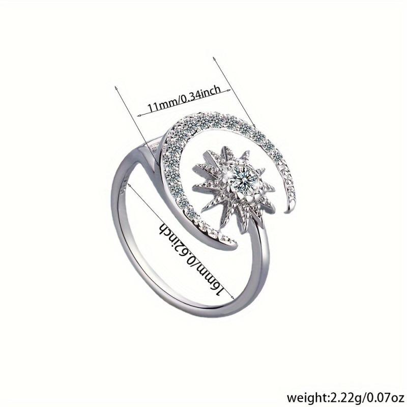 This adjustable ring features a sun and moon design crafted from 925 sterling silver with sparkling cubic zirconia. Perfect for adding a touch of celestial charm to your casual attire.