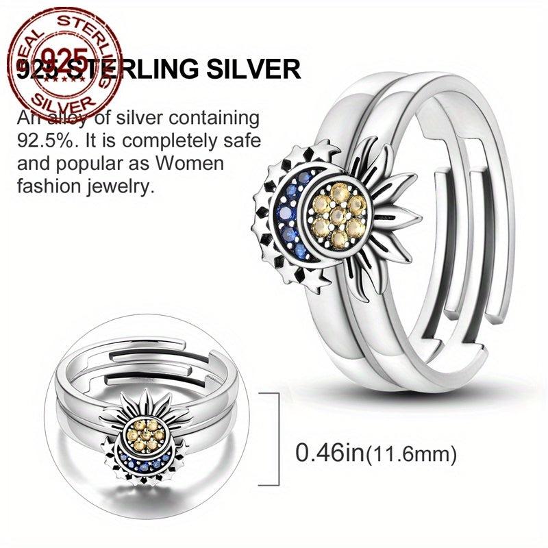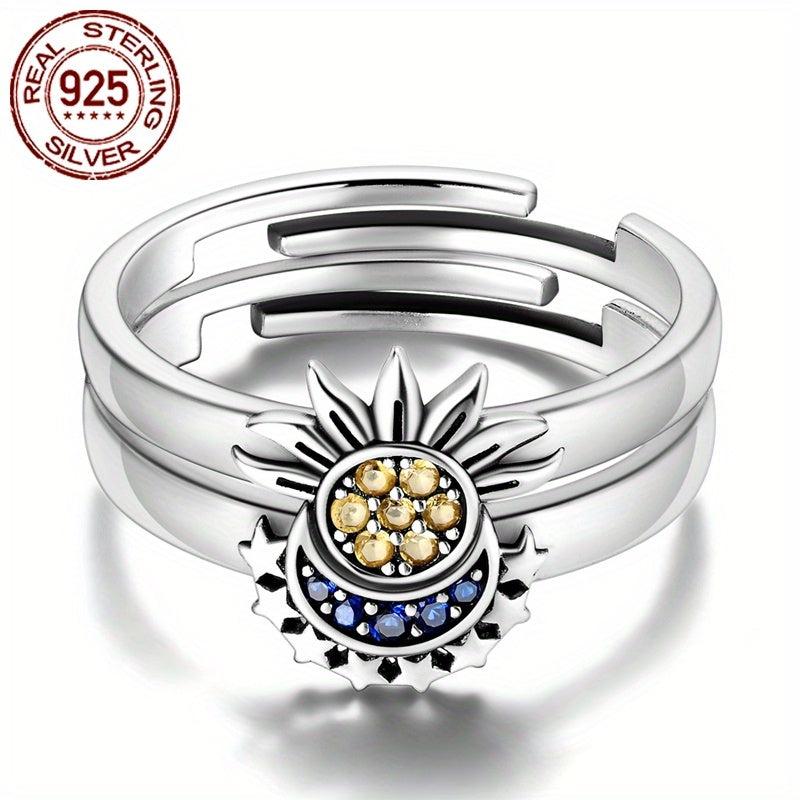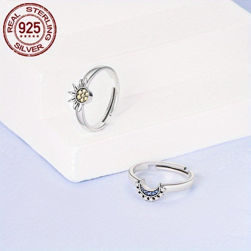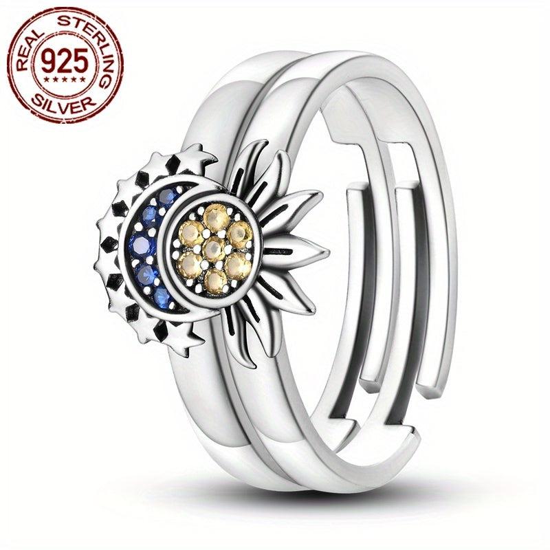 This stunning ring set features a combination design of a sun, moon, and stars embellished with synthetic zirconia. Perfect for weddings and parties, this hypoallergenic ring makes a great gift for a special occasion.