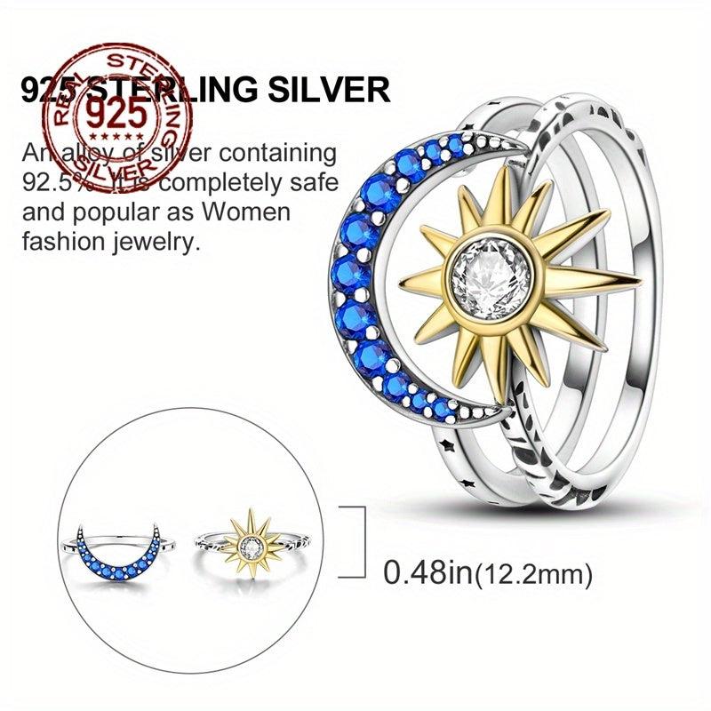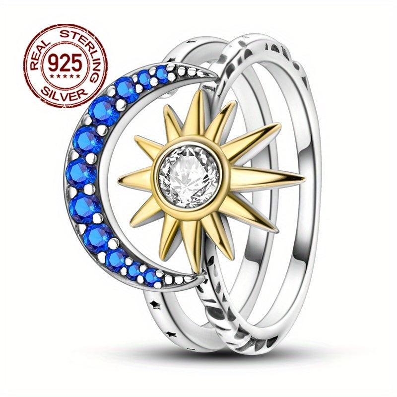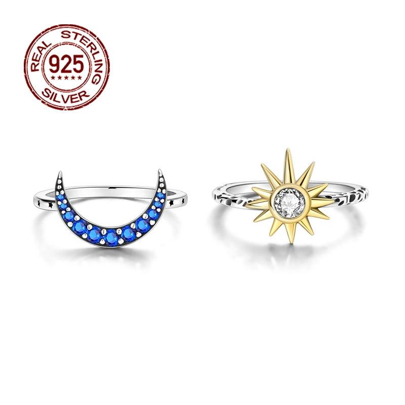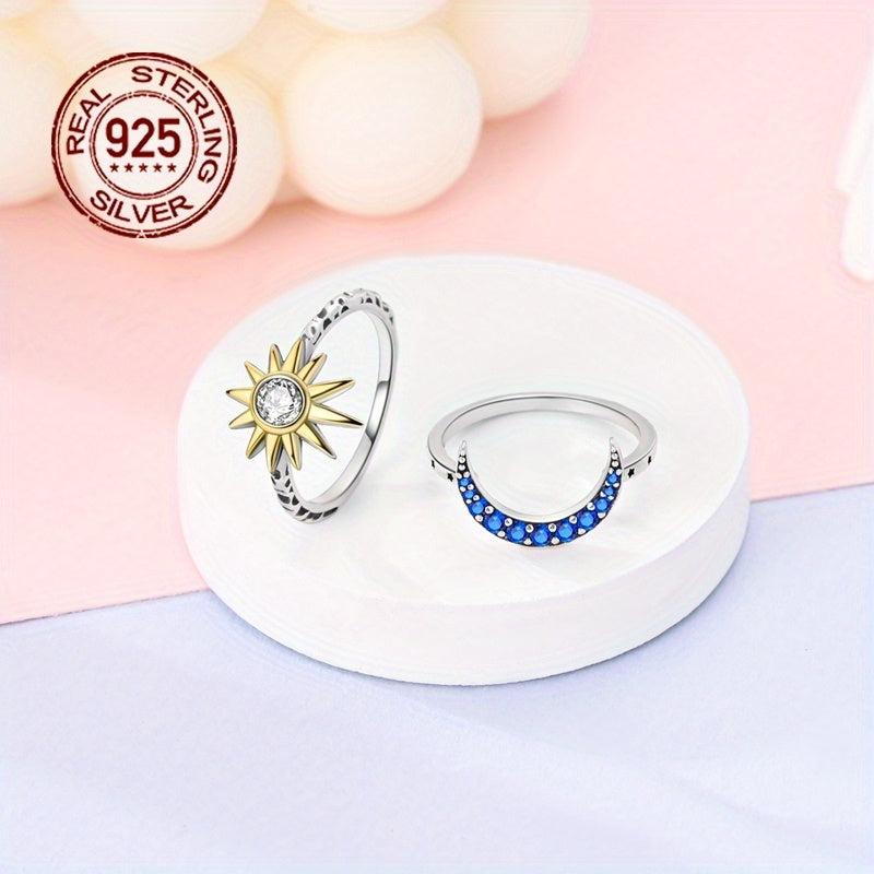 Elevate your style with this trendy ring set featuring a sun and stars design. Made of 925 silver with artificial zirconia, this set is perfect for wedding parties or everyday wear. Hypoallergenic and stylish, it's ideal for women and girls.