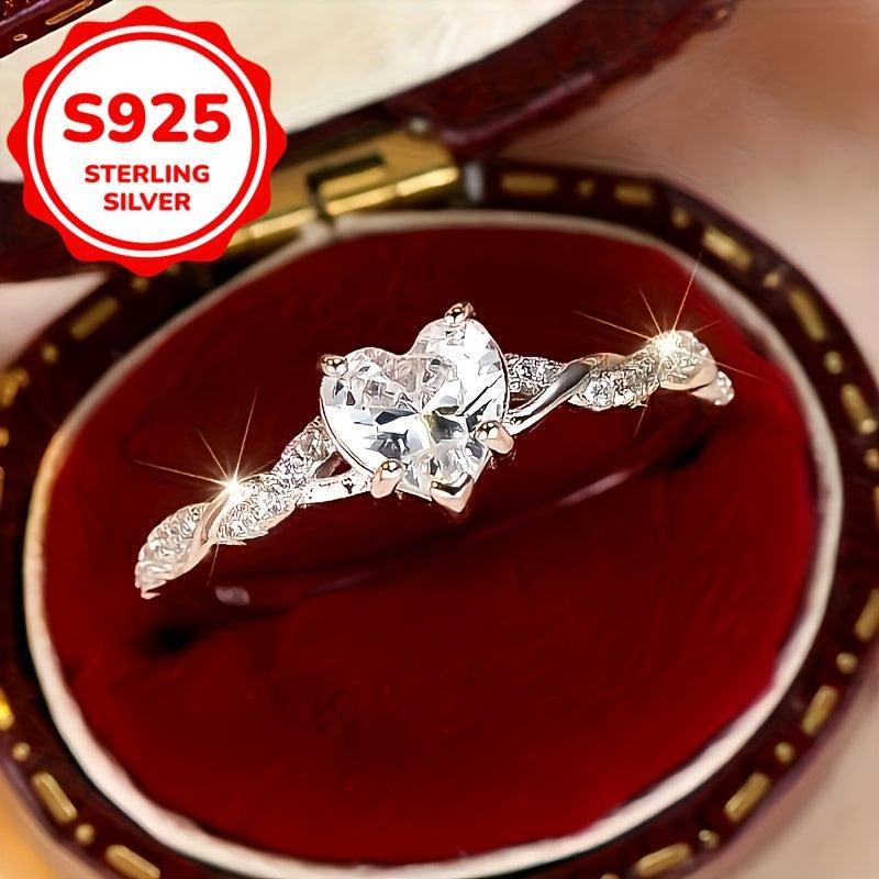 This beautiful 925 sterling silver ring features a twisted design with a sparkling cubic zirconia stone and a love heart detail. It is perfect for engagements, weddings, anniversaries, or as a promise gift.
