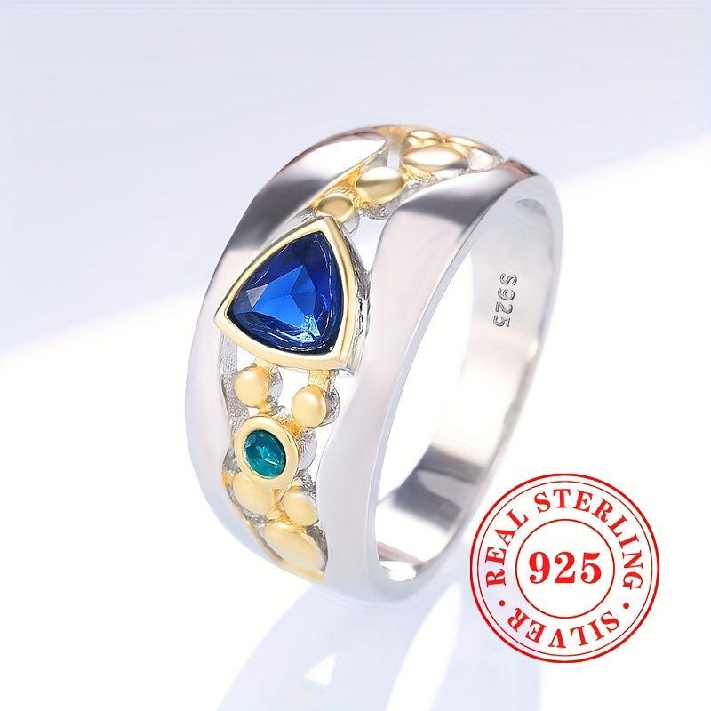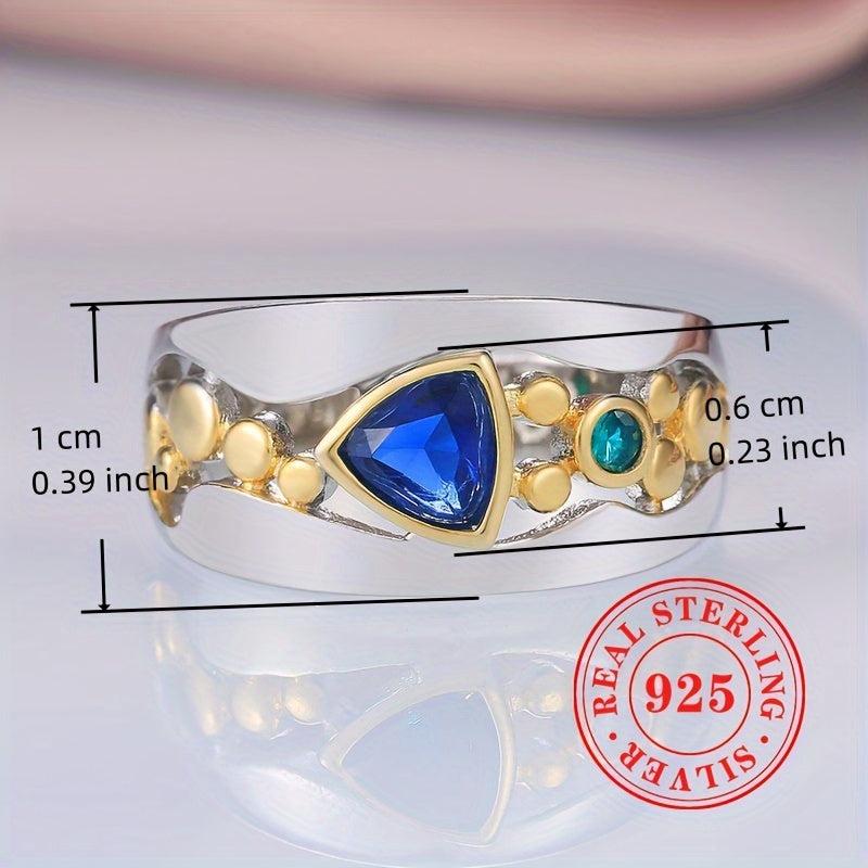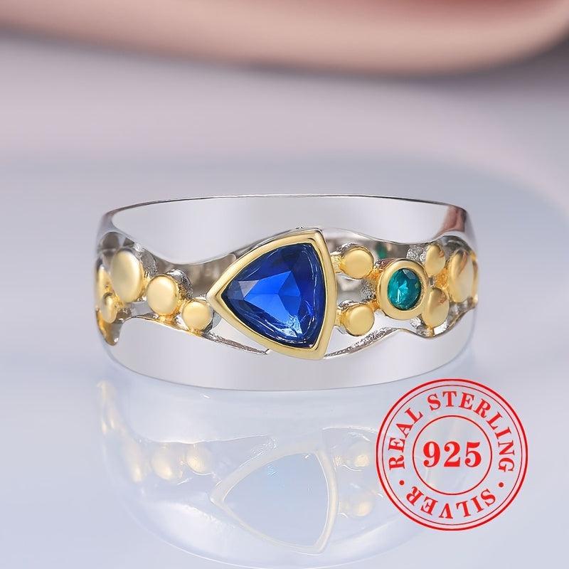 Elegant vintage ring crafted with 925 sterling silver featuring triangle cut synthetic gemstone. Perfect addition to your jewelry collection.