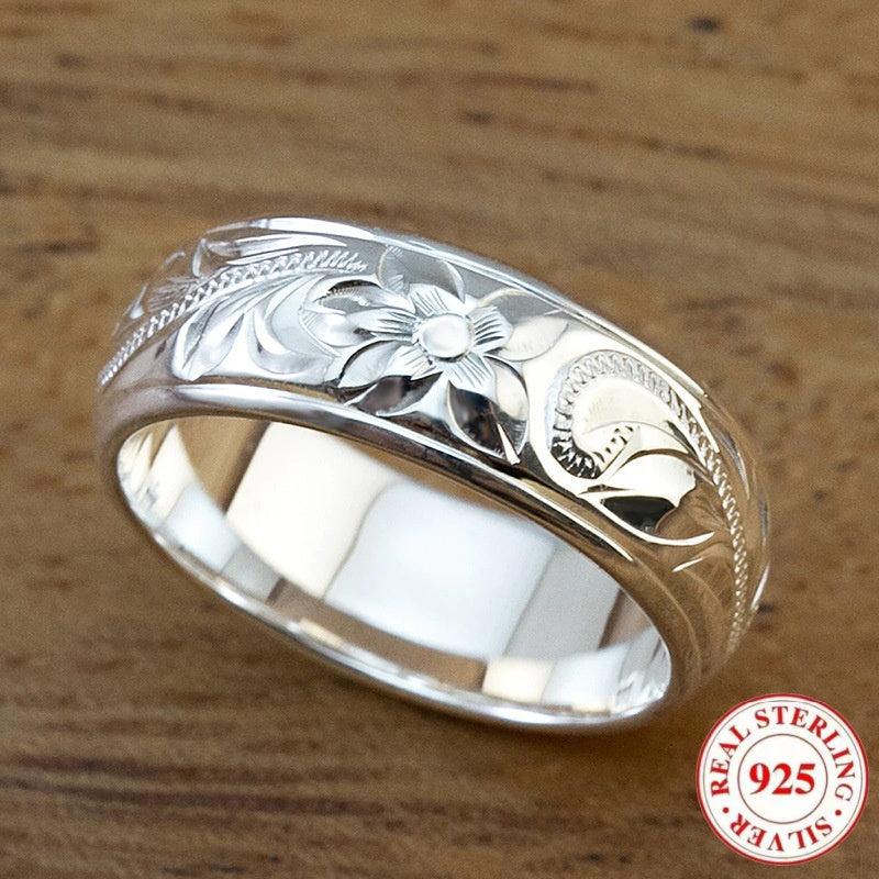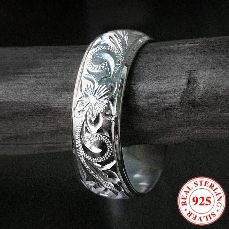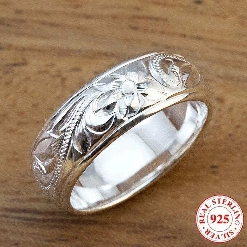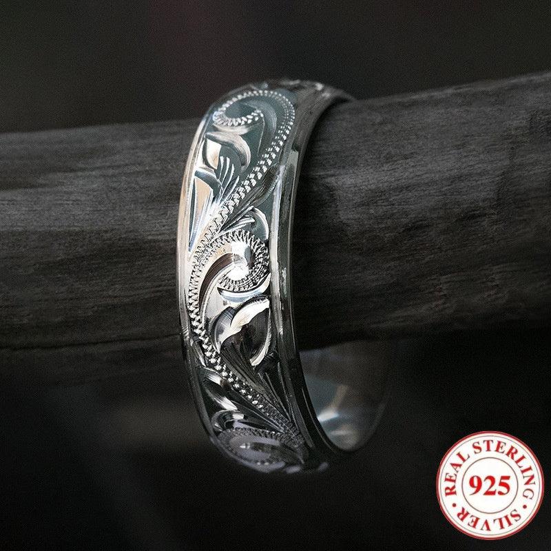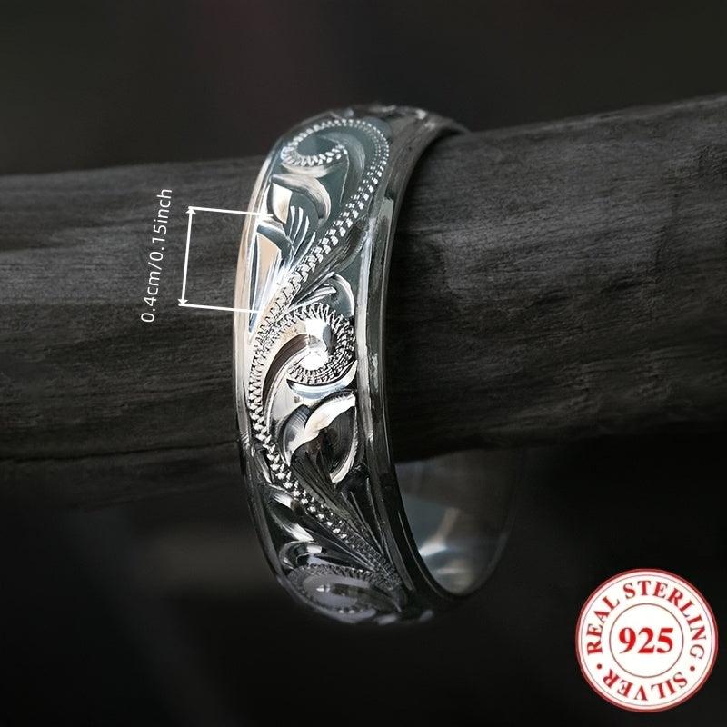 Handcrafted artisan engraved retro ring with intricate leaf and flower designs, perfect for special occasions.