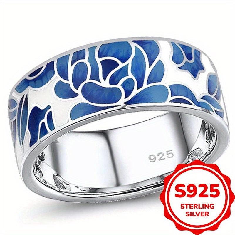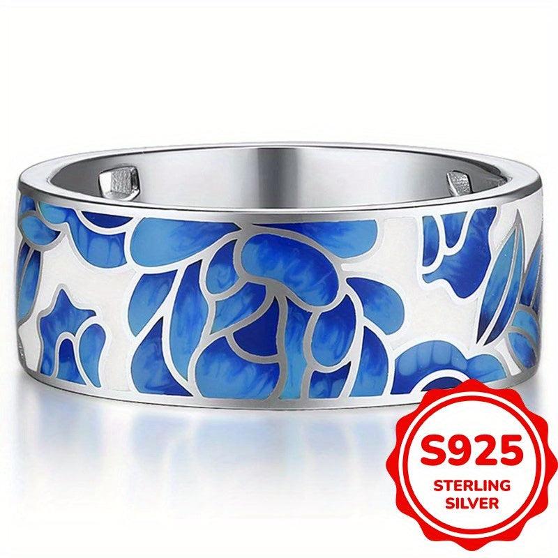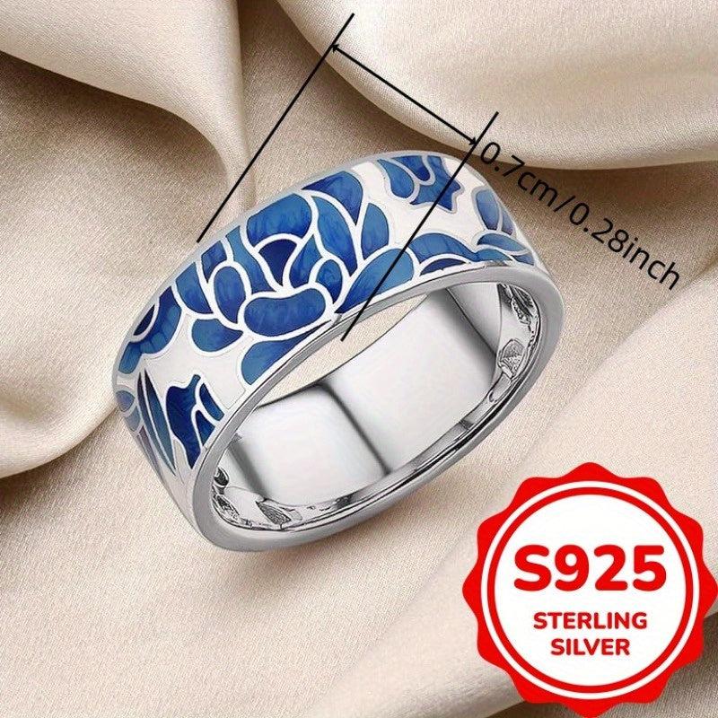This 925 silver wide band ring features a hand engraved floral drop design in a tribal style. Lightweight and comfortable to wear, this unique ring is perfect for everyday or special occasions.