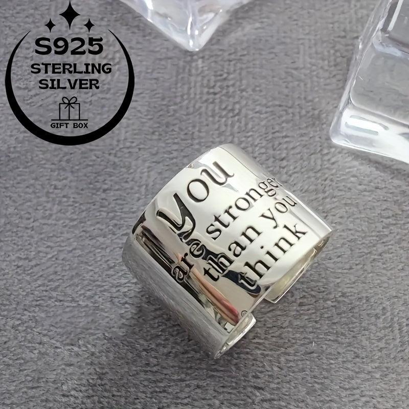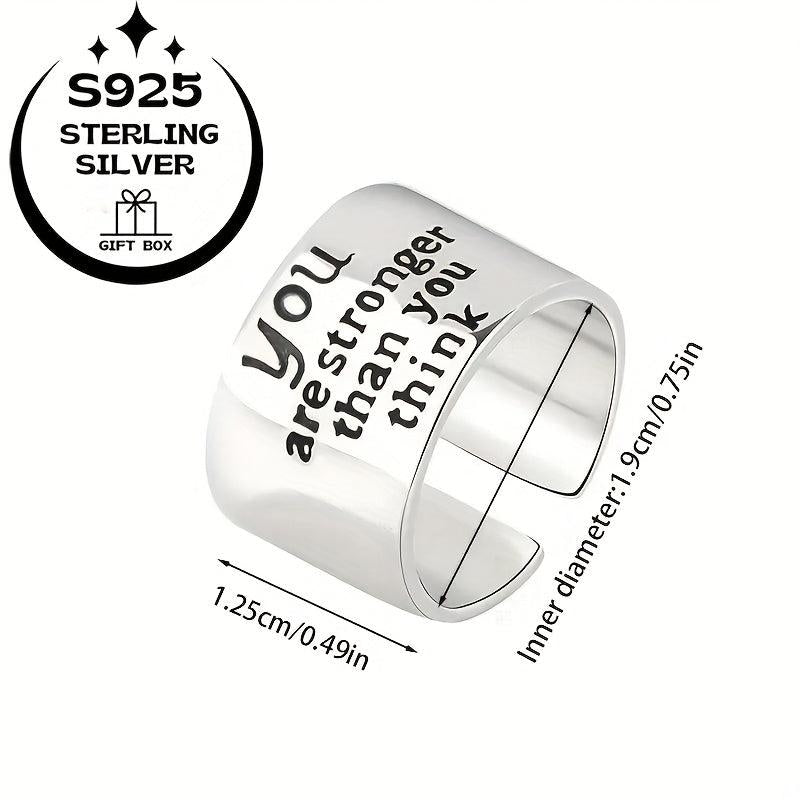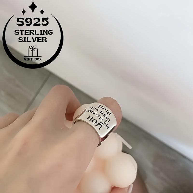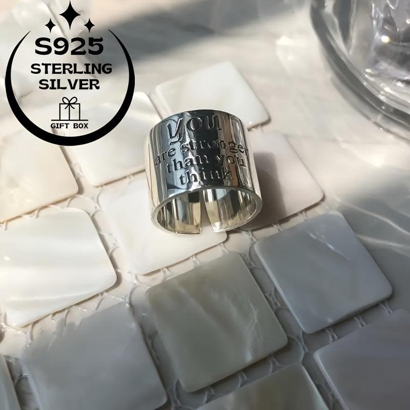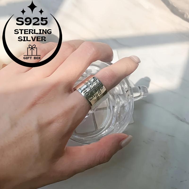 This wide letter inspirational ring is made of 925 silver, suitable for all occasions. It comes with packaging, perfect for anniversary or birthday gifts.