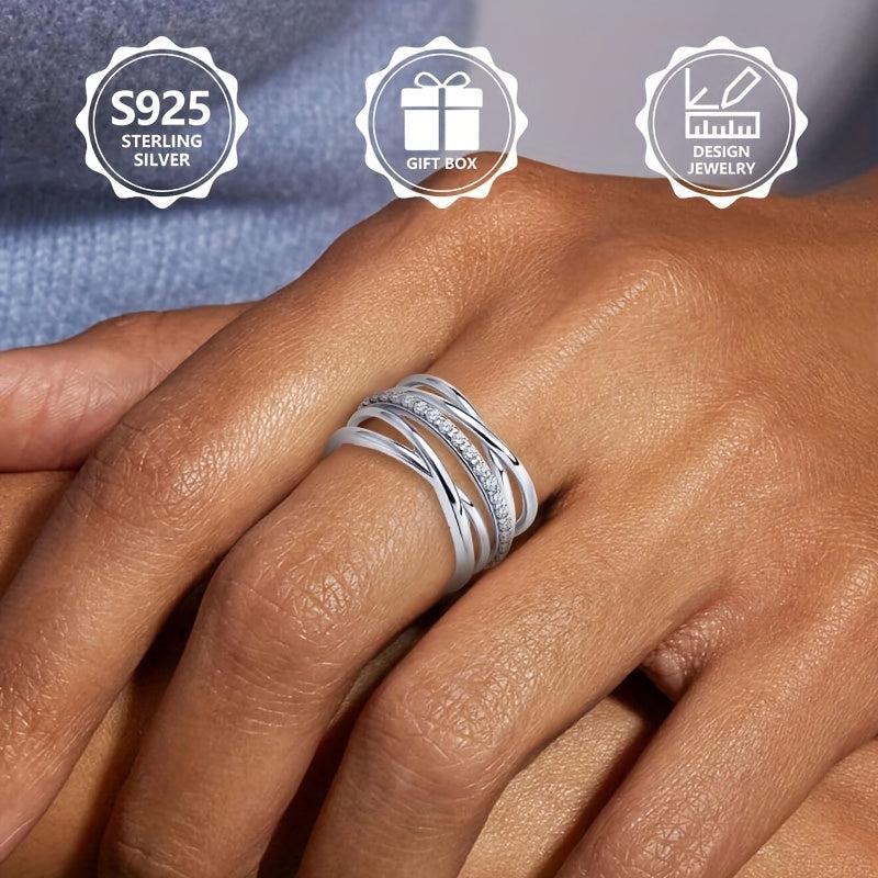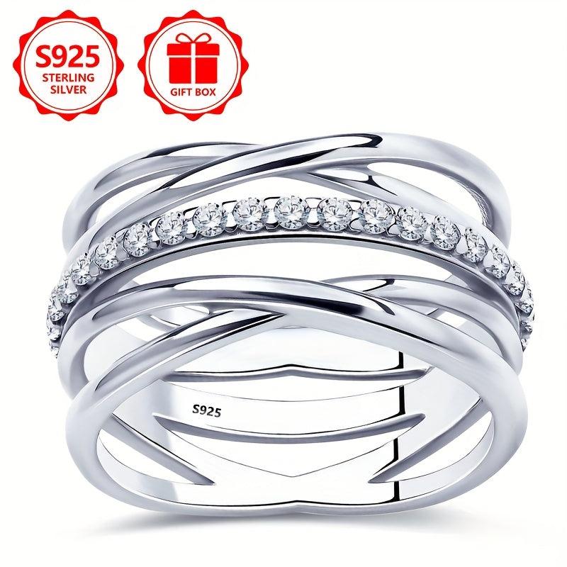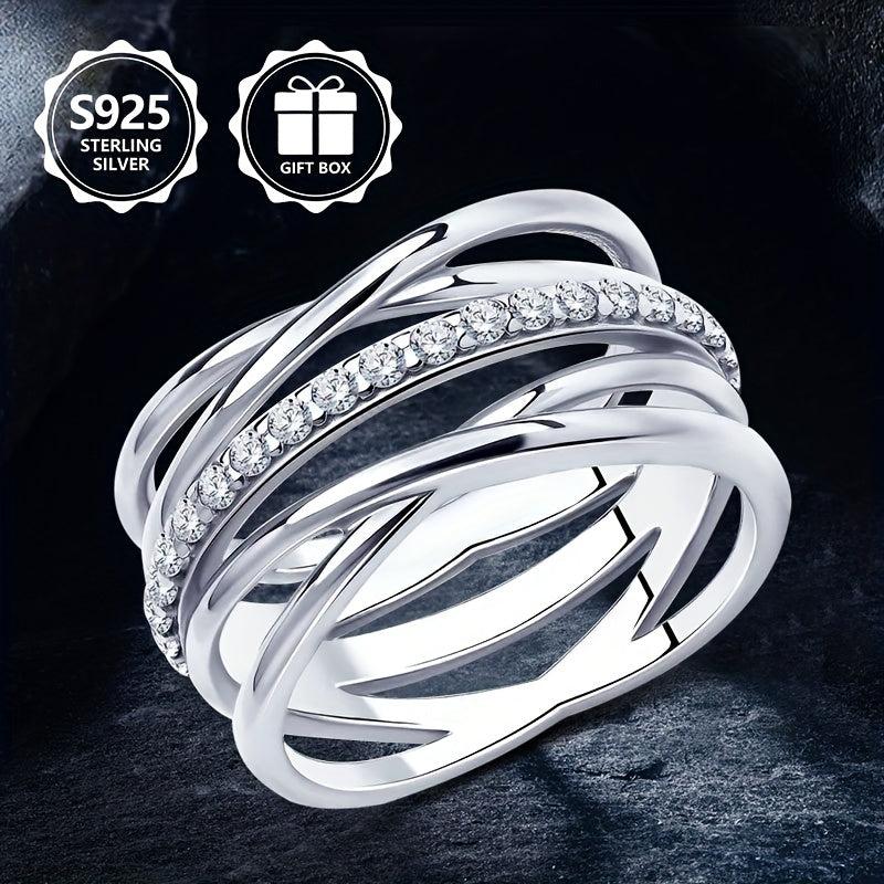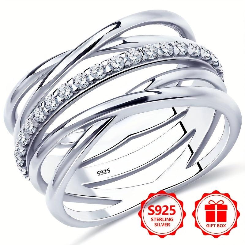 Elegant 925 sterling silver ring with double row of synthetic cubic zirconia stones, perfect gift for your girlfriend.