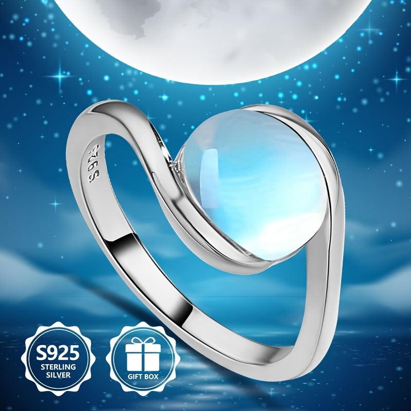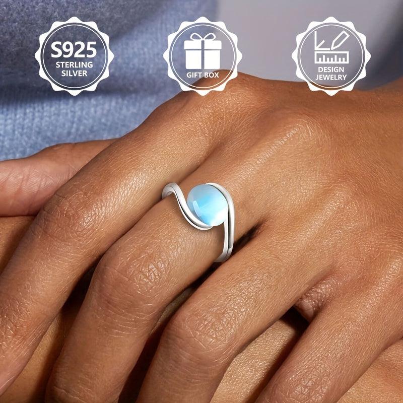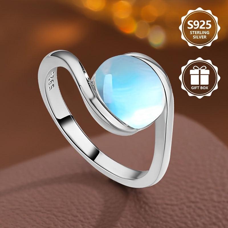 Elegant 925 sterling silver ring featuring a sea embrace design with a synthetic oval stone. This minimalist ring is a perfect accessory for any occasion.