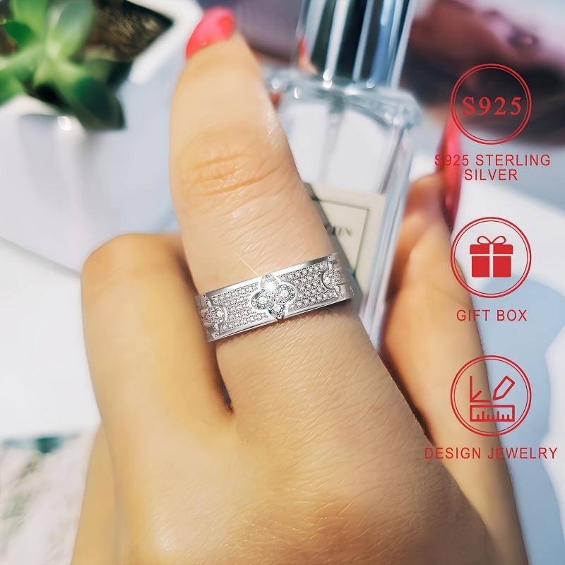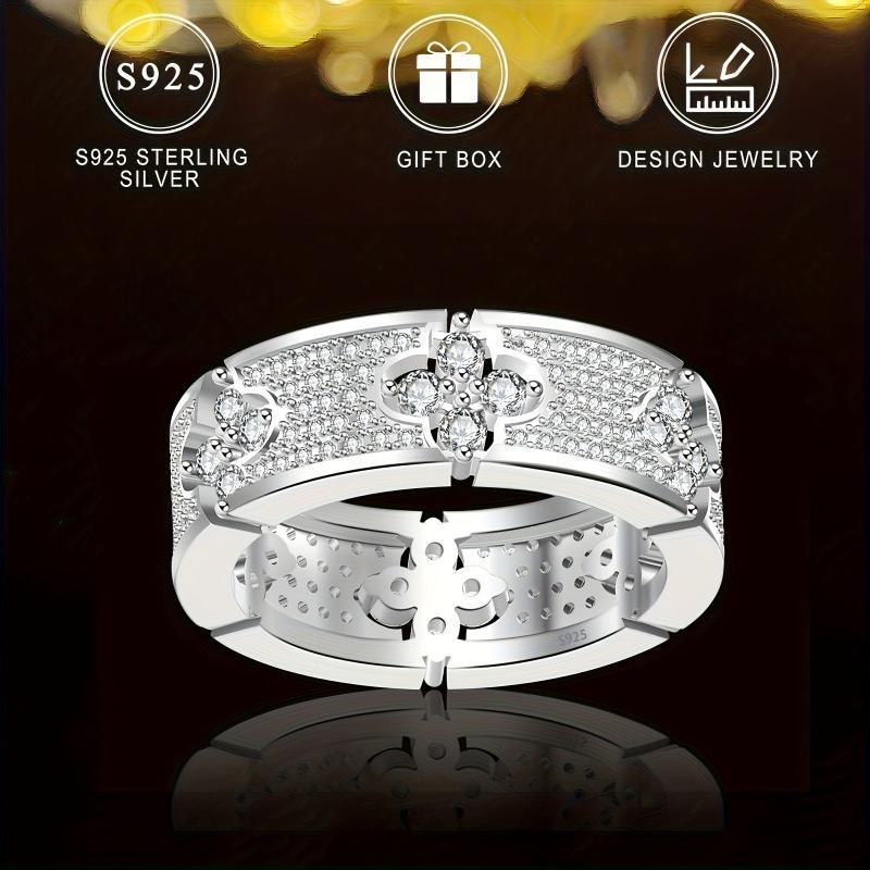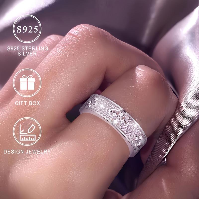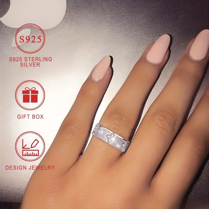Stunning 925 sterling silver ring adorned with sparkling cubic zirconia, ideal for proposals and weddings. Comes with a gift box, perfect for friends and self.