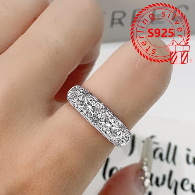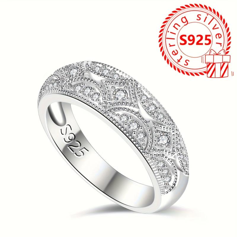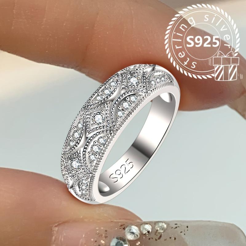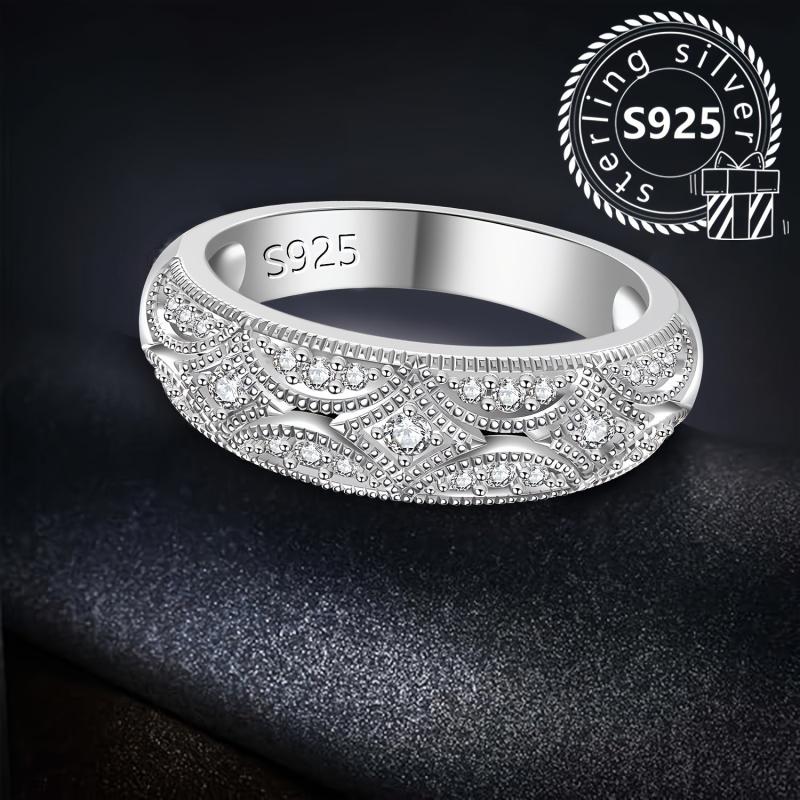 This stunning women's ring is made of 925 sterling silver and features sparkling cubic synthetic zirconia inlay. Perfect for engagement or wedding band.
