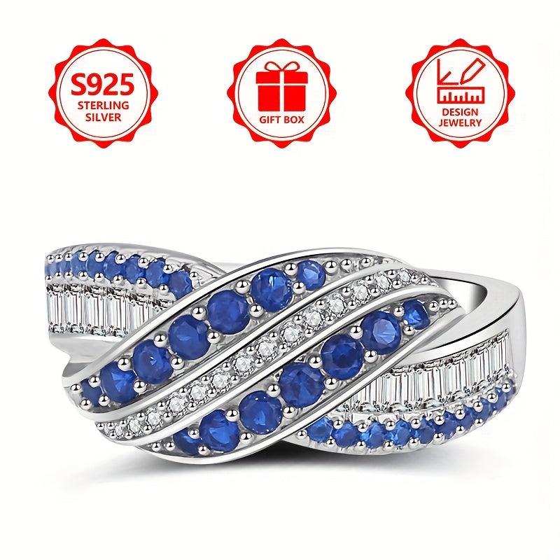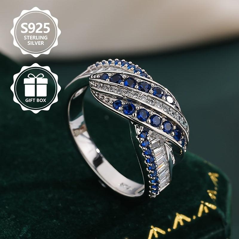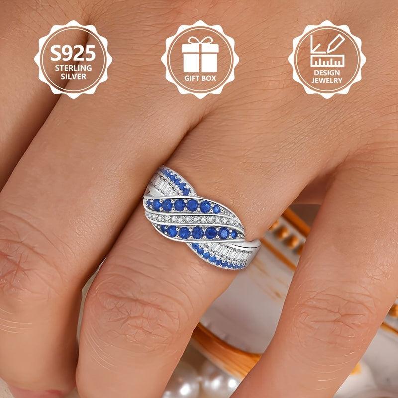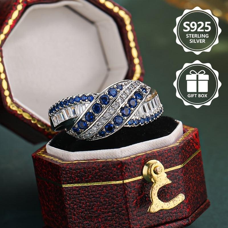This stunning 925 sterling silver ring features a double row of cubic synthetic zirconia settings, making it a perfect choice for an engagement or wedding band. It is a great gift for friends or mothers.