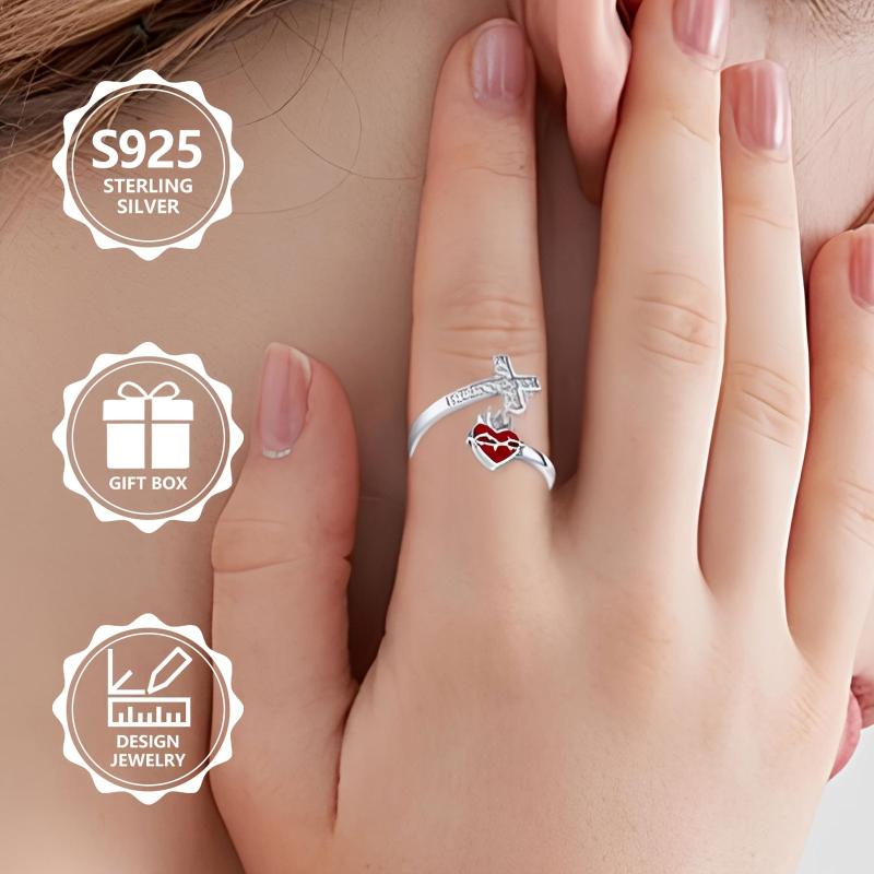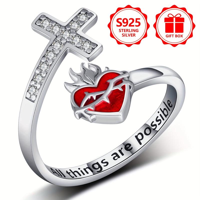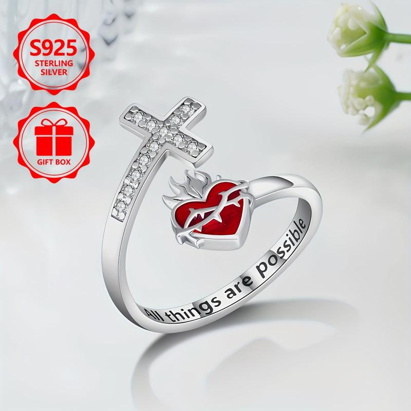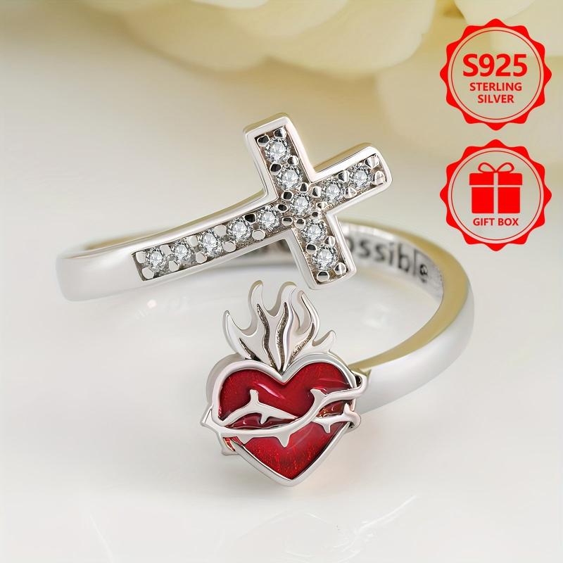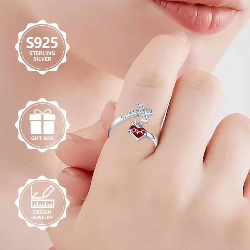 This stunning 925 silver statement ring features the Sacred Heart design. Everything is possible with this elegant ring on your finger.