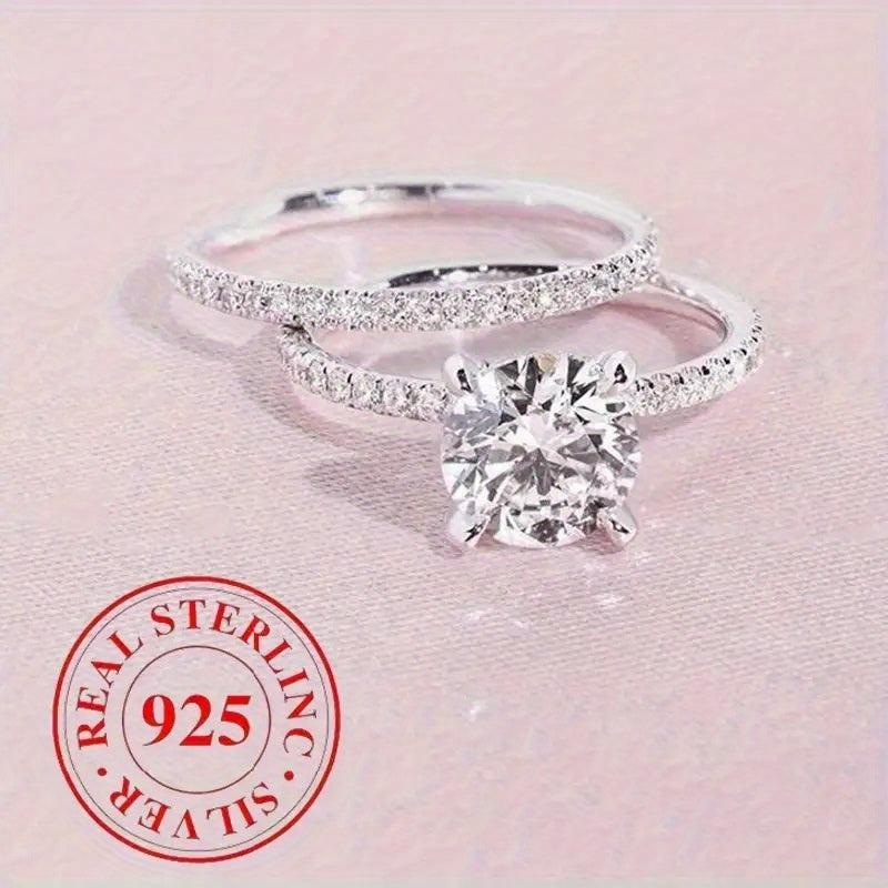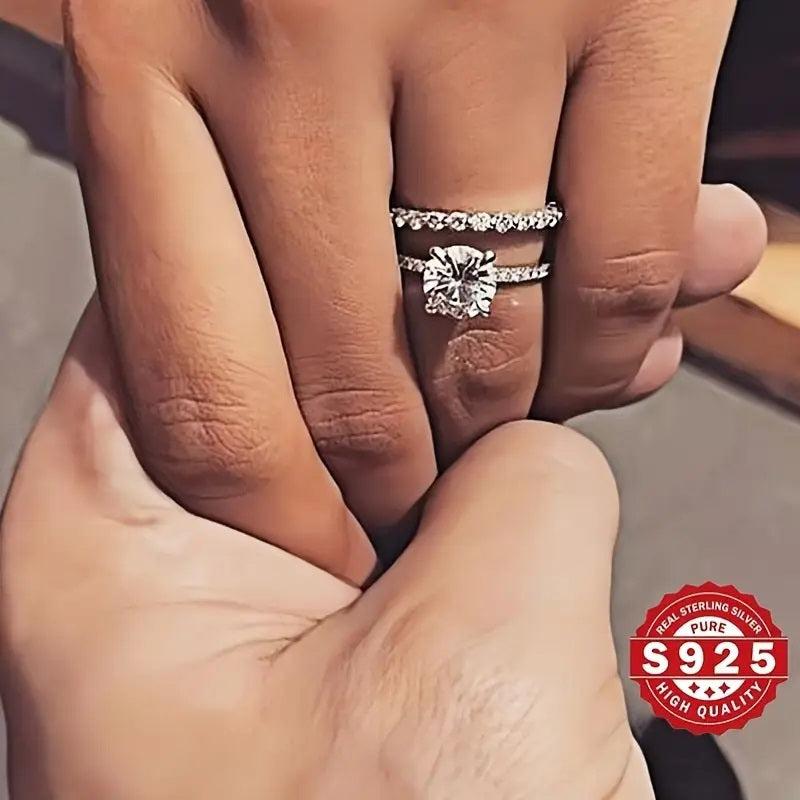 Delight your friends with this stunning two-piece set of silver rings, perfect for weddings, engagements, or banquets.