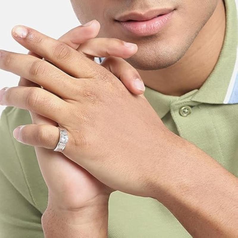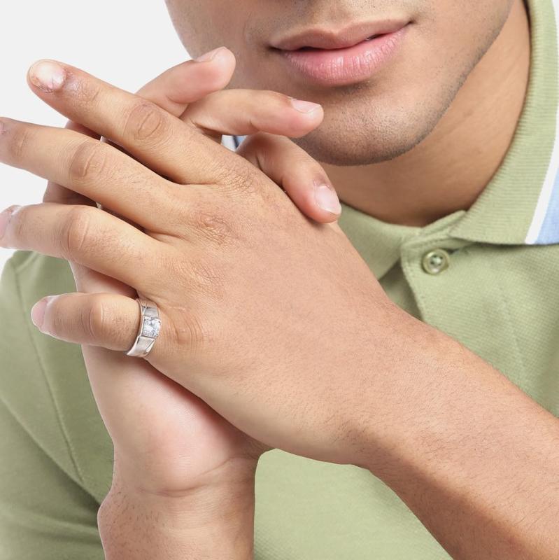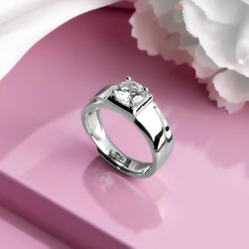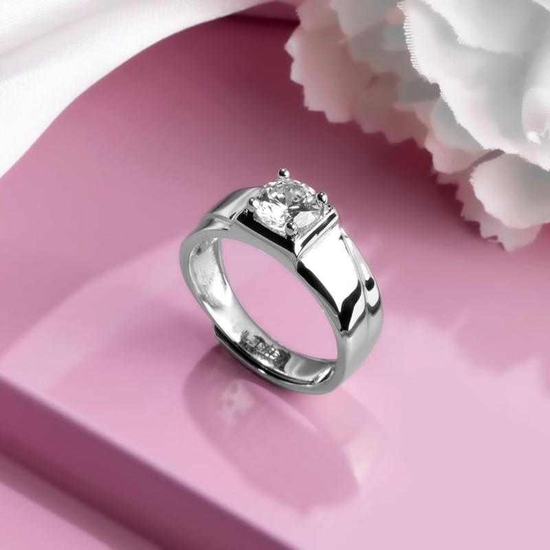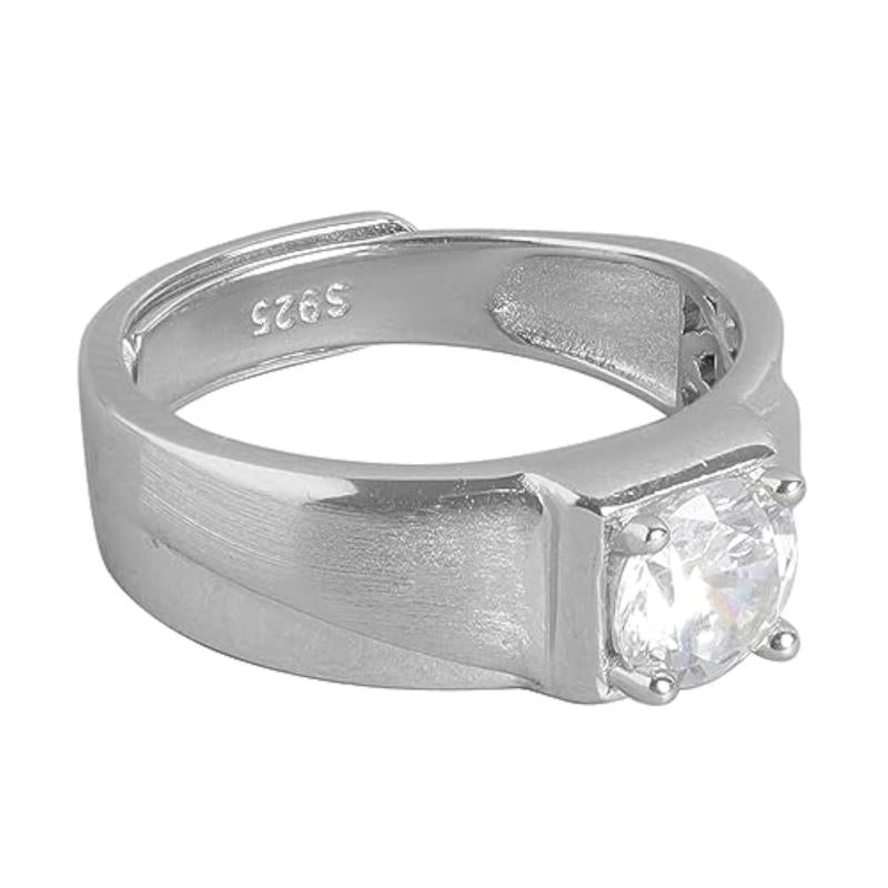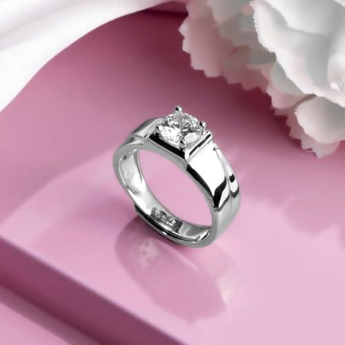 This stunning ring features a sparkling cubic zirconia solitaire set in 925 sterling silver. The ring is rhodium plated for a brilliant shine and durability. It comes with a hallmark for authenticity.