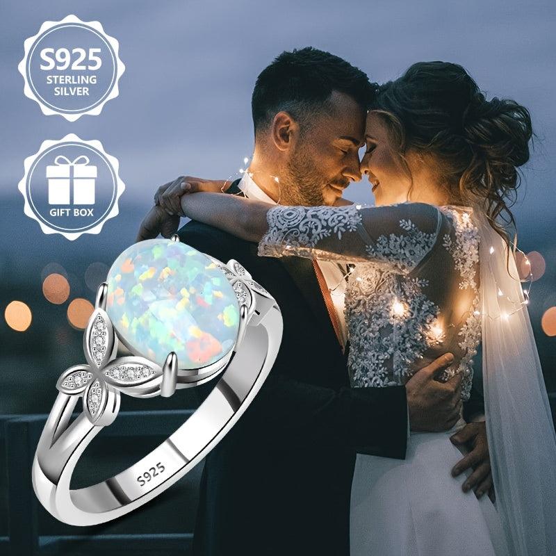 This stunning ring features a generous butterfly design with an oval synthetic cubic zirconia, making it perfect for a marriage proposal or engagement.
