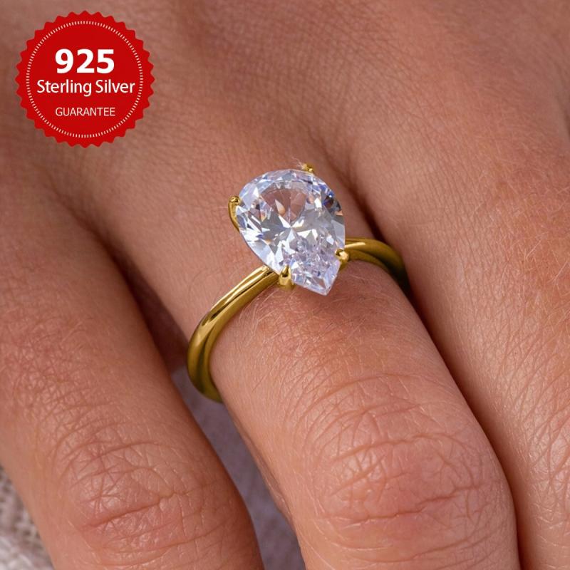 Add a touch of elegance with this stunning 925 sterling silver ring featuring a sparkling pear-shaped cubic zirconia stone. Perfect for daily wear or as a special Valentine's Day gift for your loved one.