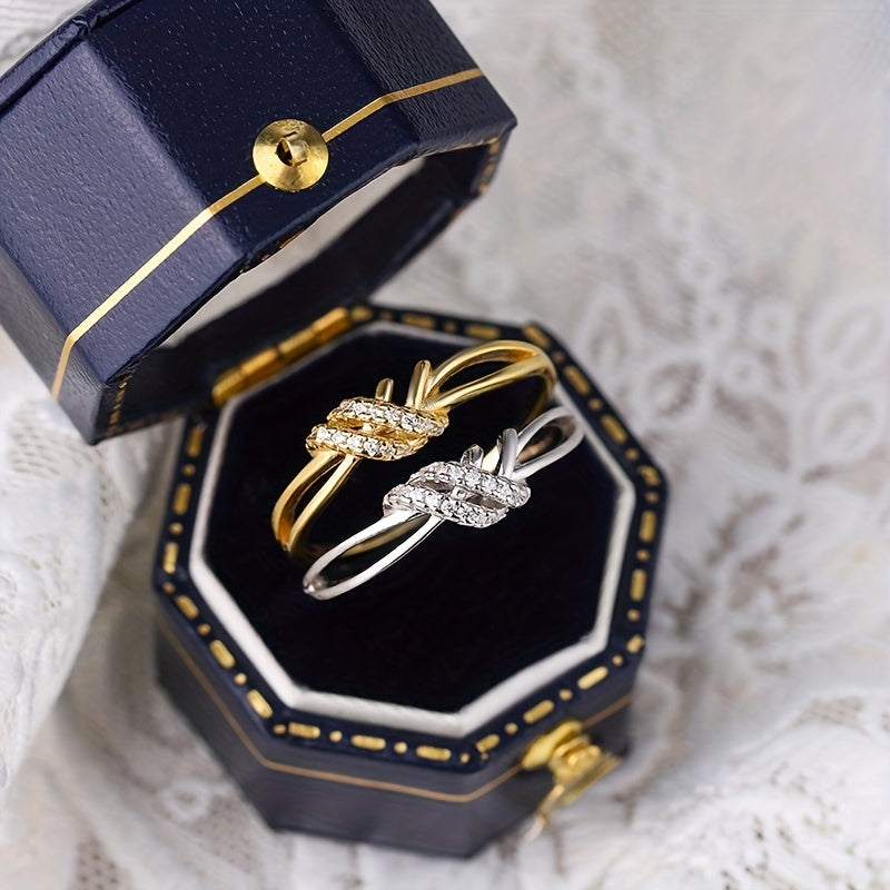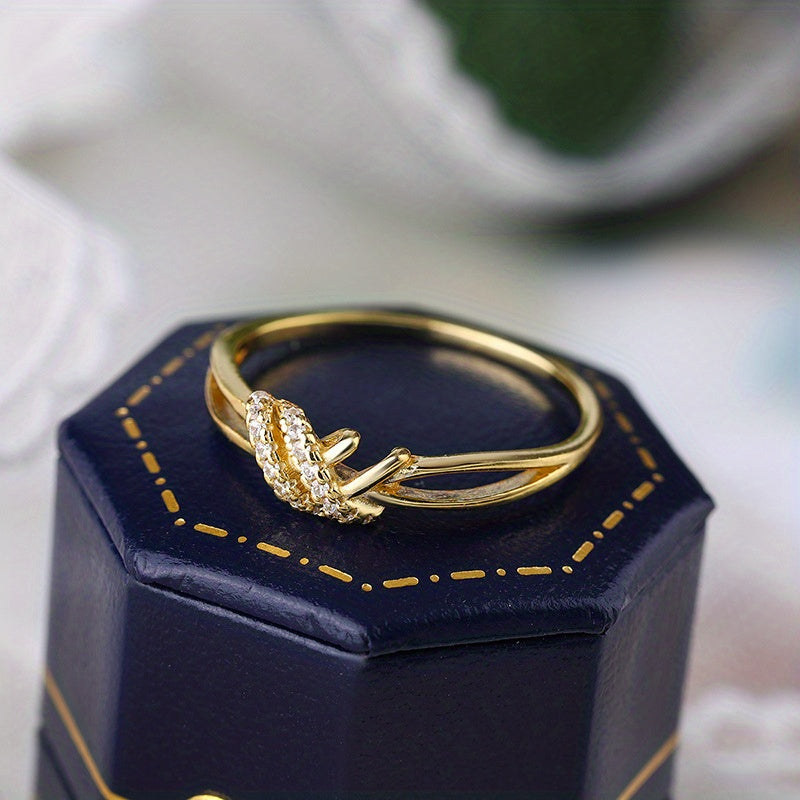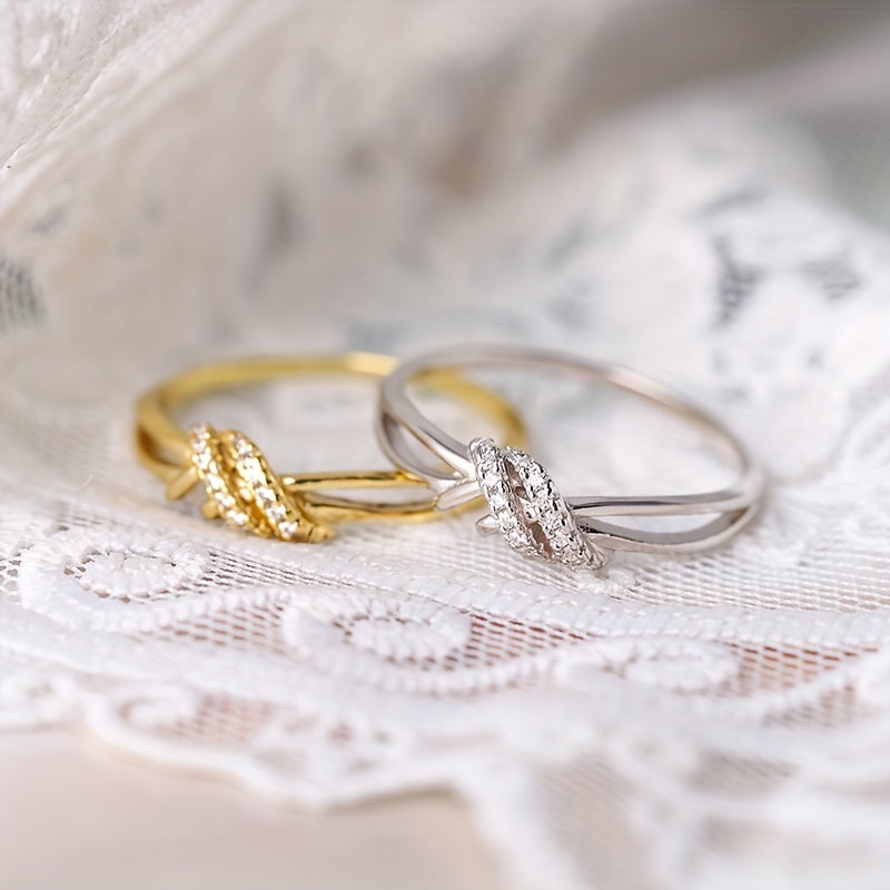 Elevate your look with this stunning double layer knot ring inlaid with sparkling zircon. Perfect for daily wear or special occasions in two classic colors.