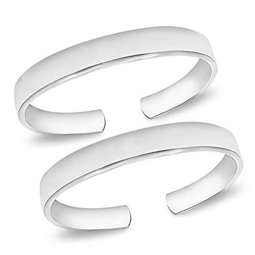 925 Sterling Silver Flat Toe Ring for Leg Thumb Plain Comfortable (Flat)