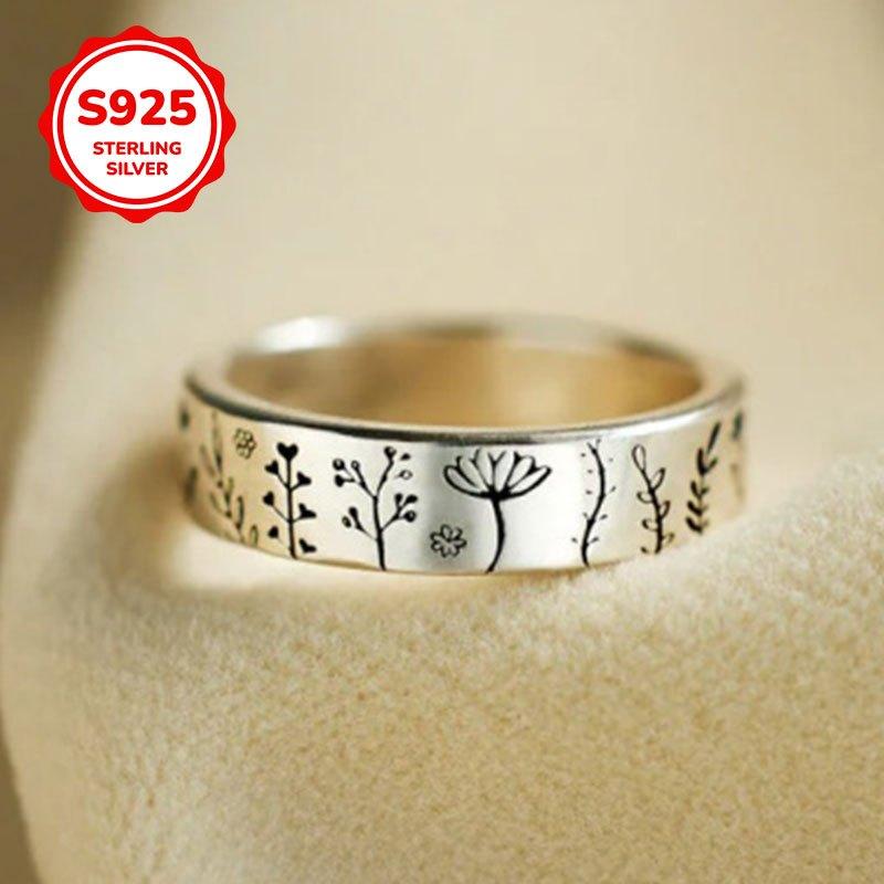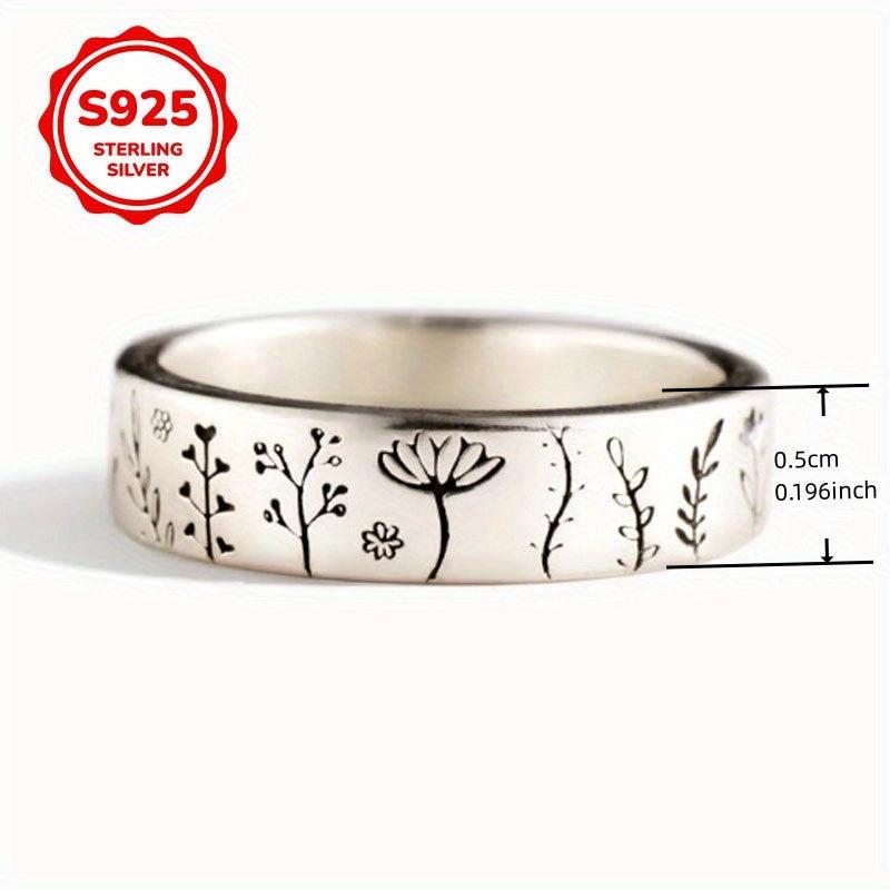 This wide band ring features a beautifully carved flower and tree pattern in a bohemian style. Made of high-quality 925 sterling silver, this retro ring is perfect for daily wear.