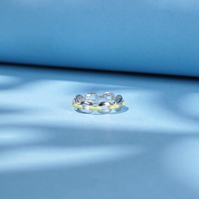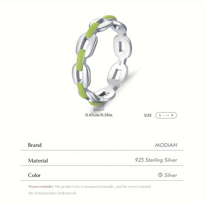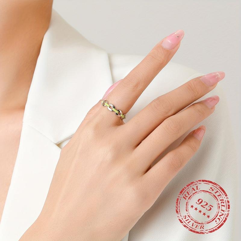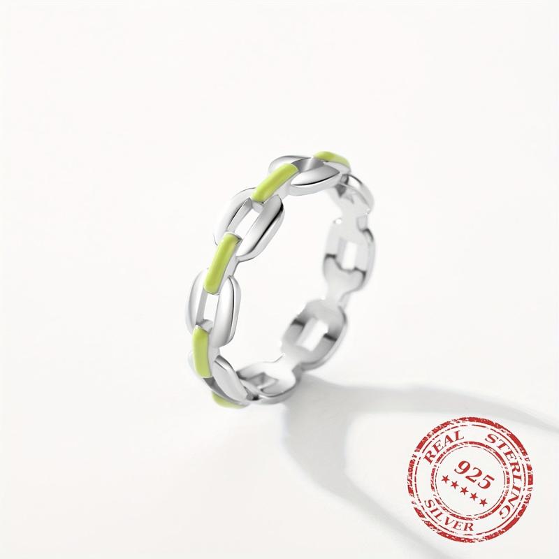 Add a touch of elegance to your look with this charming 925 sterling silver ring featuring green enamel and a hollow out design. Perfect for stacking or wearing alone.