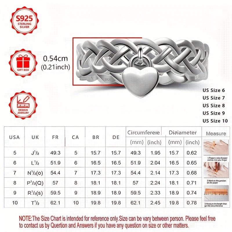 This 925 sterling silver ring features a heart pendant design, making it a stylish accessory for holidays, vacations, parties, and everyday wear. It's the perfect gift for family or friends.