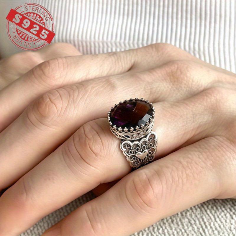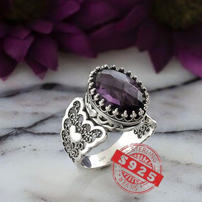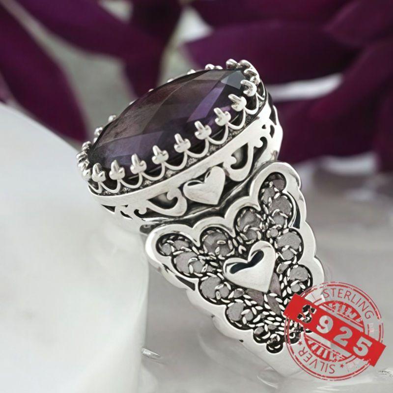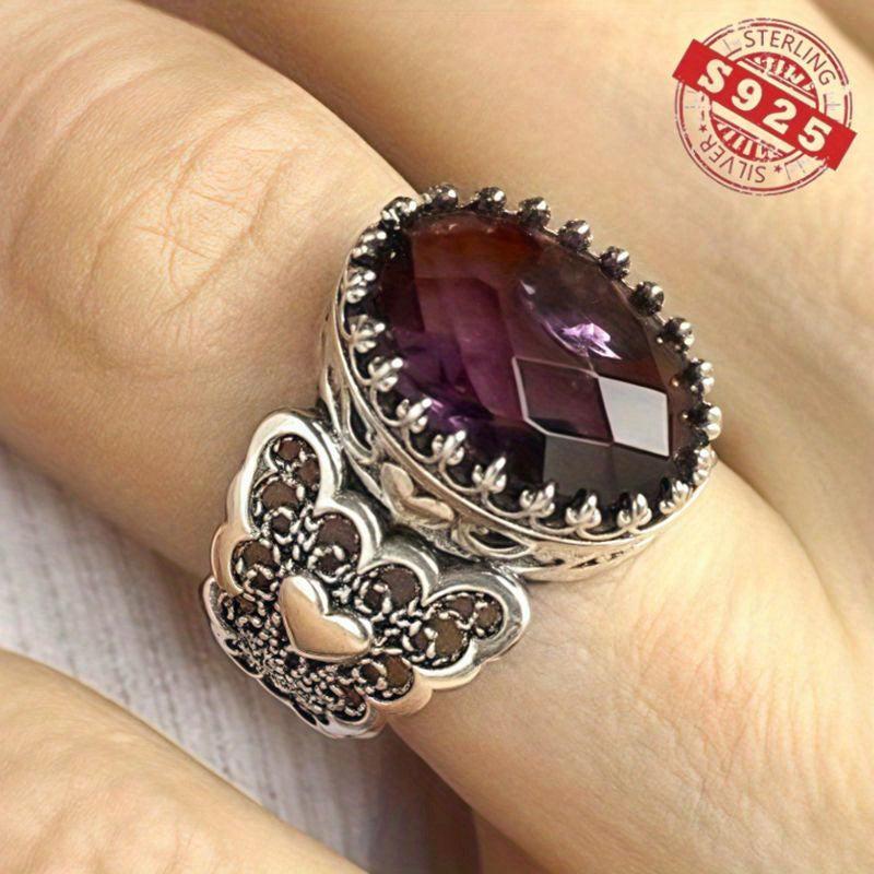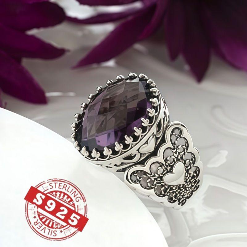 This stunning ring features an infinity art heart design with a double-sided checkerboard oval cut. Made from high-quality 925 sterling silver, it's the perfect choice for an engagement or proposal gift. The ring also includes a February birthstone, making it a thoughtful and meaningful present.