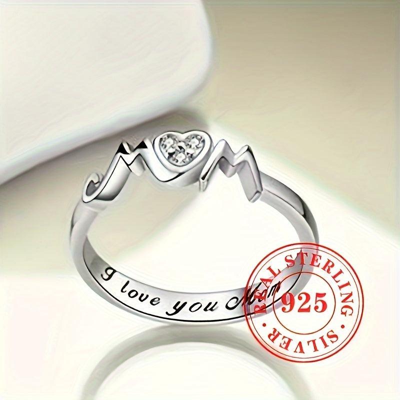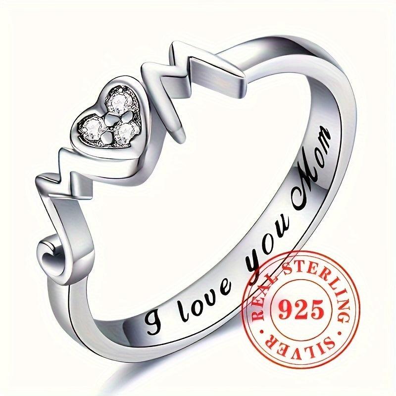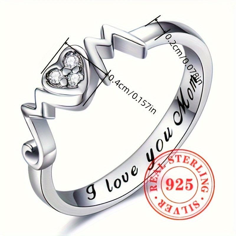 925 Sterling Silver Mom Heart Ring with Zirconia, Daily Wear Gift