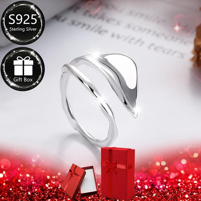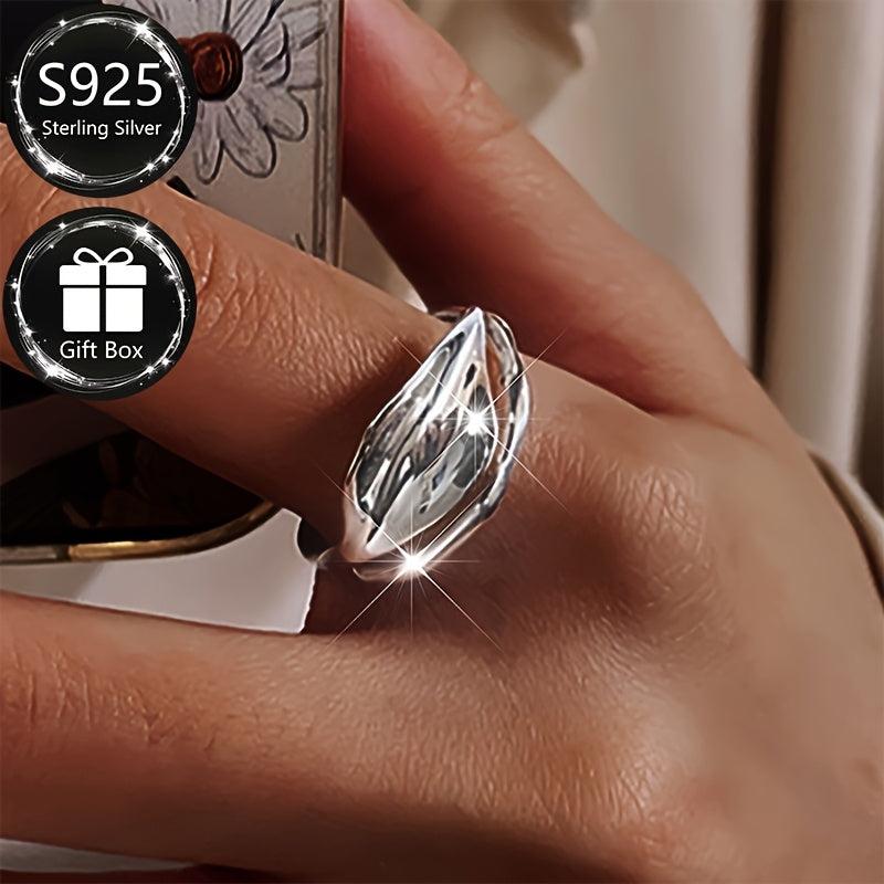 This stylish open ring is made of 925 sterling silver, featuring a geometric design that is versatile for daily wear and parties. The adjustable fit ensures a comfortable and secure fit.