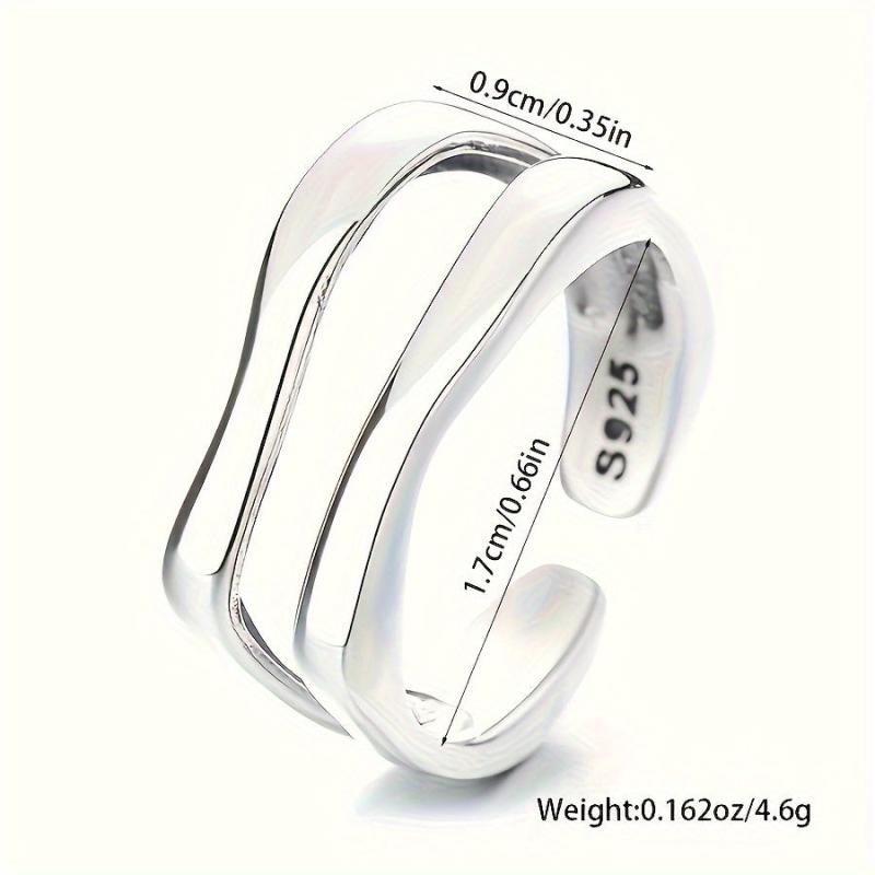 This 925 sterling silver open ring features an irregular double layer wave design. It is hypoallergenic and suitable for both men and women. Perfect for adding a fashionable touch to any casual look.