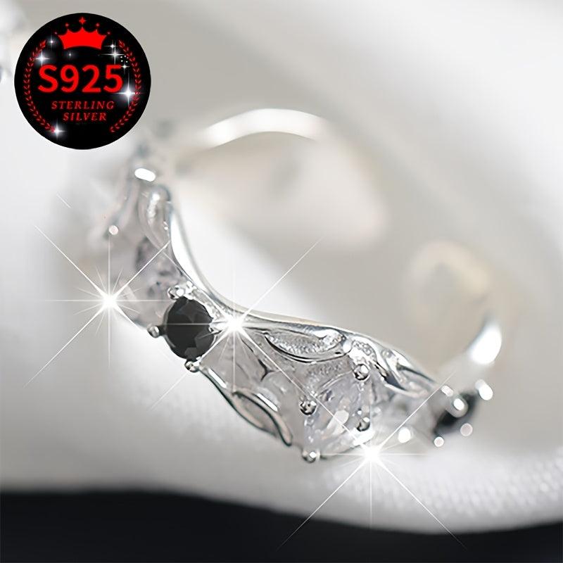 Elegant 925 sterling silver open ring featuring synthetic zirconia stones. This adjustable ring is perfect for daily wear, travel, and parties. Surprise someone special with this stunning piece!