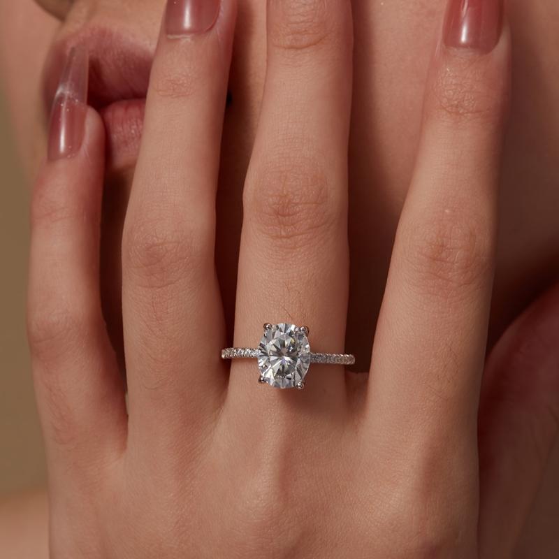 This stunning 925 sterling silver ring features a brilliant oval moissanite stone, perfect for a wedding or special occasion. The shine and sparkle of this ring will surely make you stand out in any banquet or wedding setting.