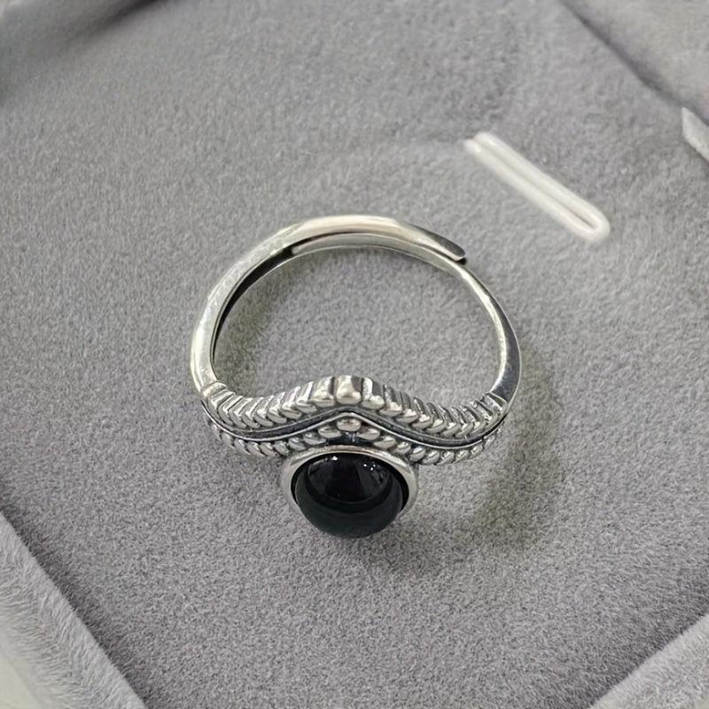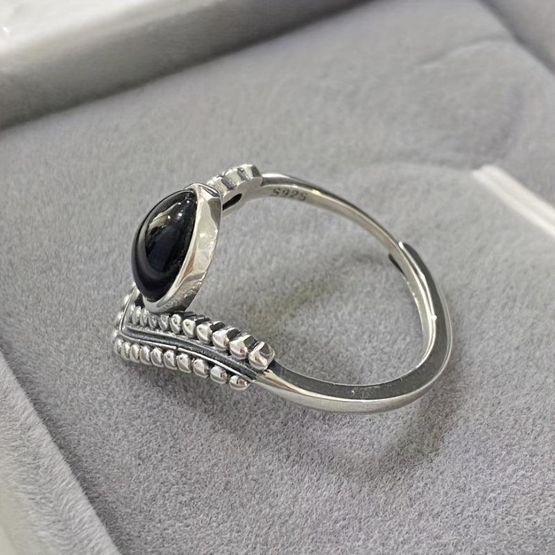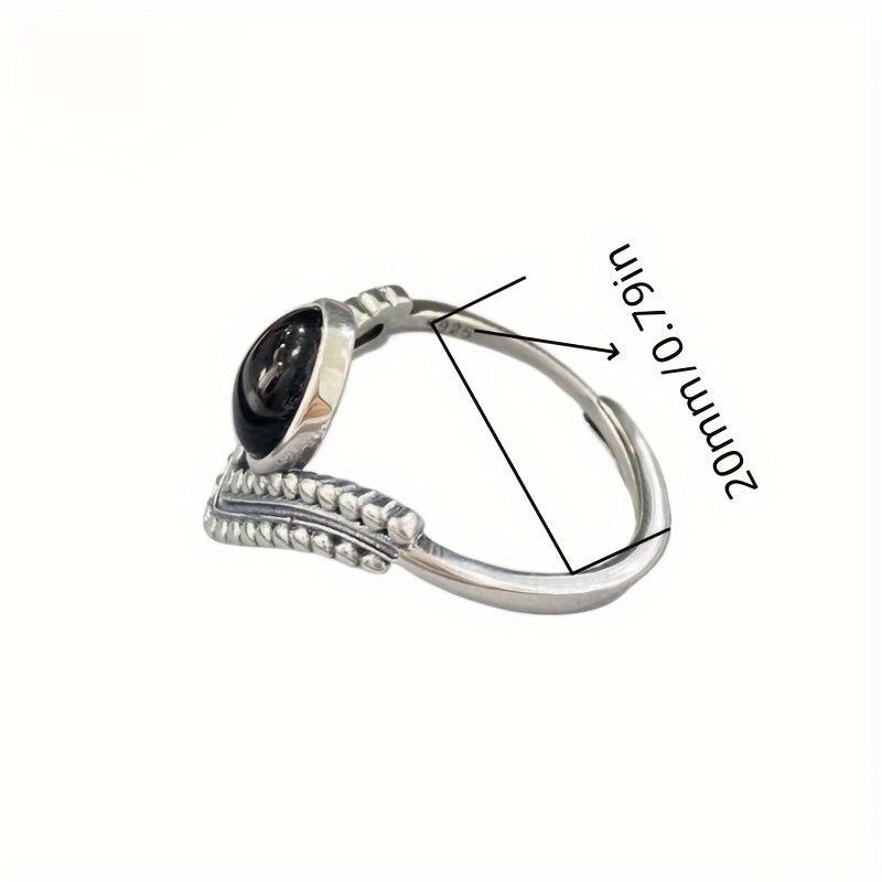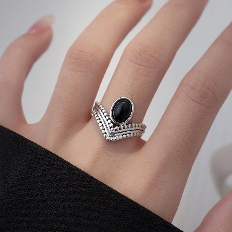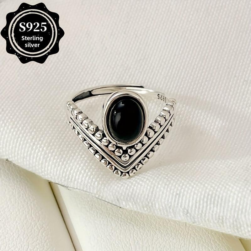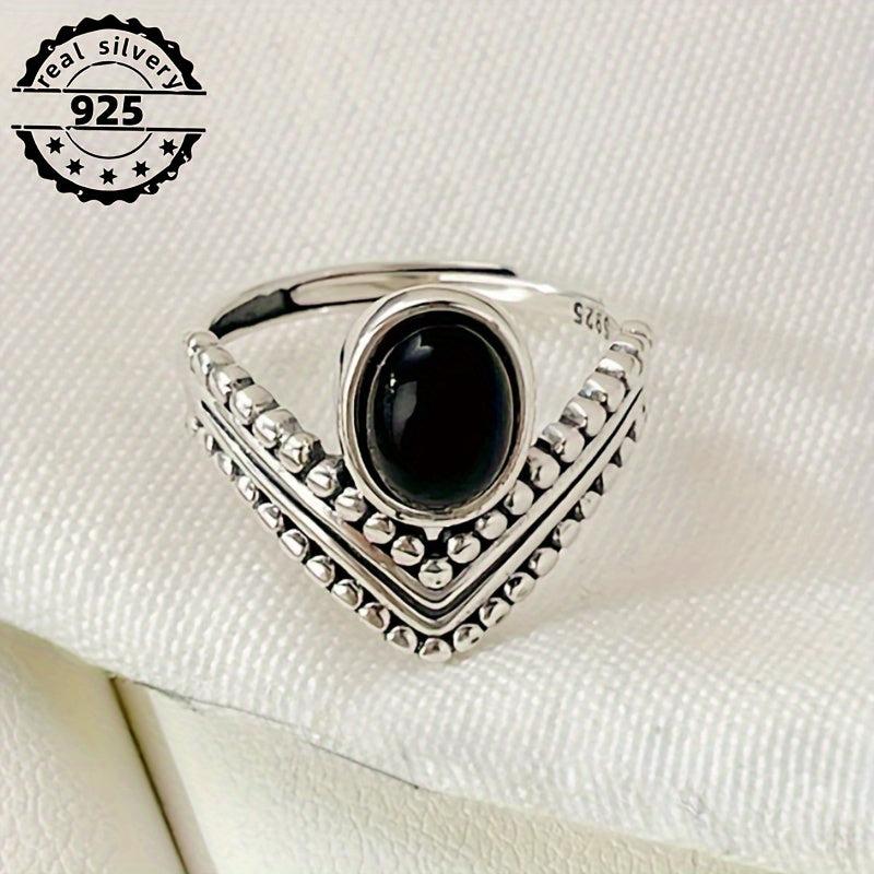Elegant and retro, this Thai sterling silver ring features an oval synthetic agate stone set in a V-shaped crown design. Perfect for a proposal or engagement, this ring is ideal for expressing your love.