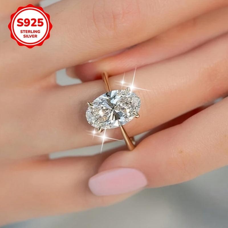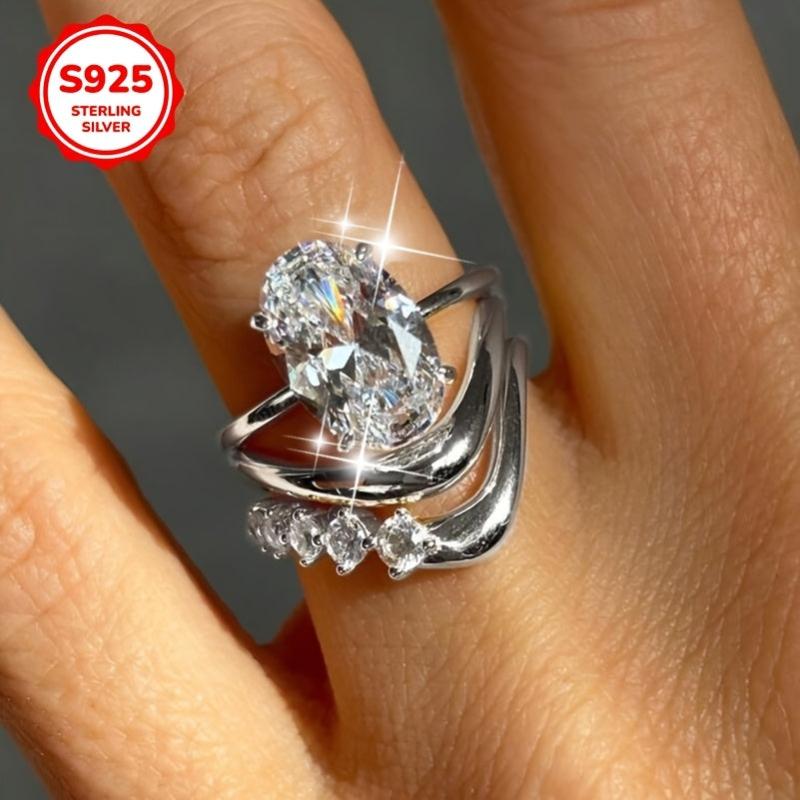 Elegant 925 sterling silver wedding promise rings featuring oval cut synthetic zirconia. Perfect for engagement, anniversary, and daily wear.