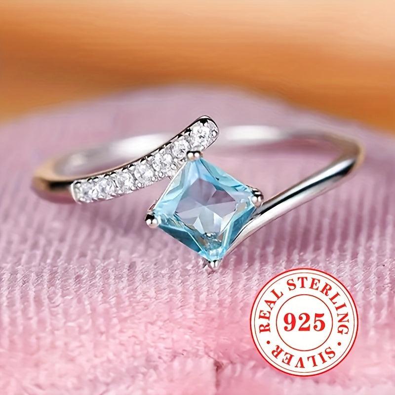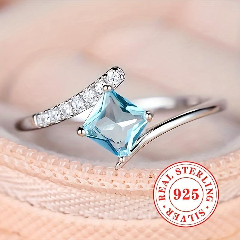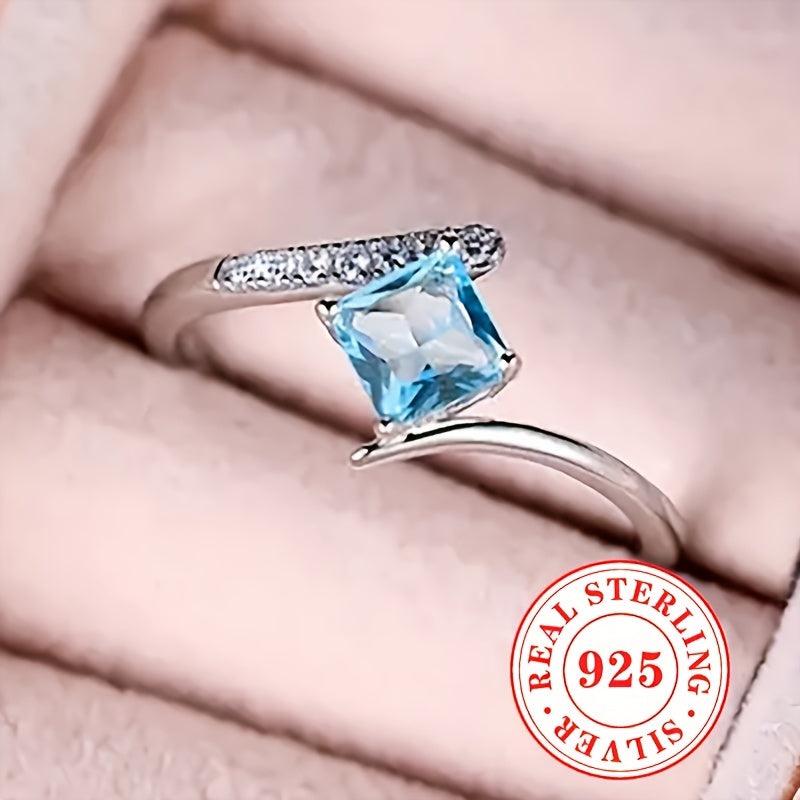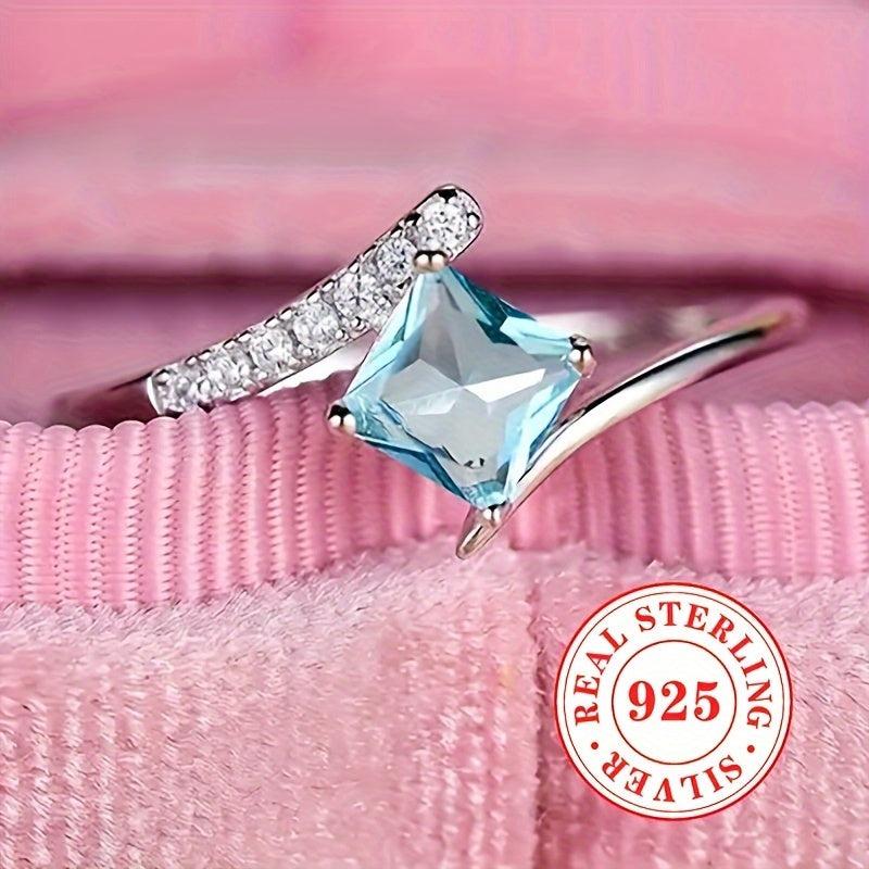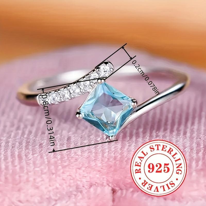Exquisite 925 sterling silver ring with rhombus cut ocean synthetic zirconia. Perfect for engagement and wedding jewelry.