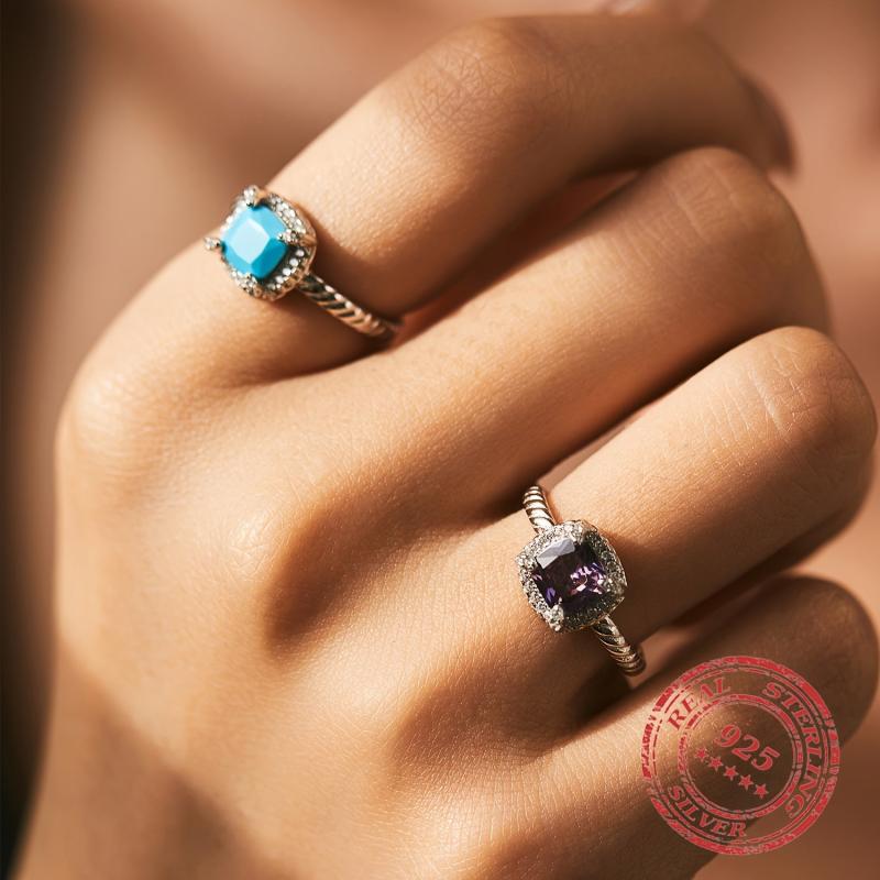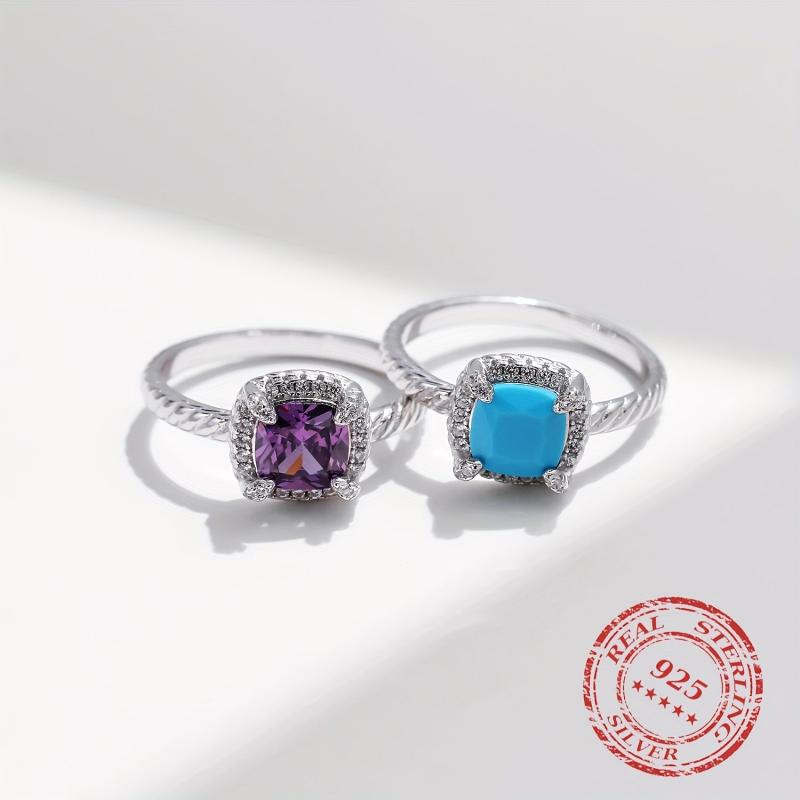 Add a touch of elegance to your party outfit with this stunning 925 sterling silver ring featuring sparkling turquoise. The hypoallergenic material makes it perfect for sensitive skin.