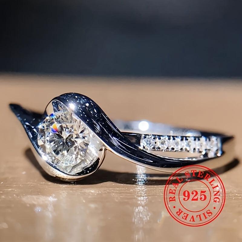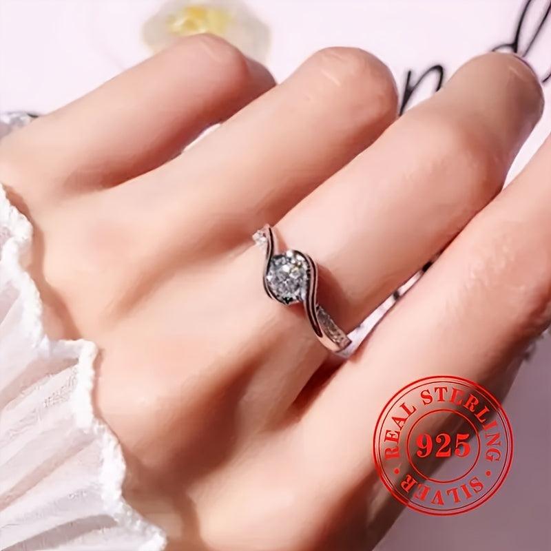 Elegant and timeless, this 925 sterling silver ring features a dazzling single synthetic zirconia stone. Perfect for weddings, proposals, or as a special gift for her.