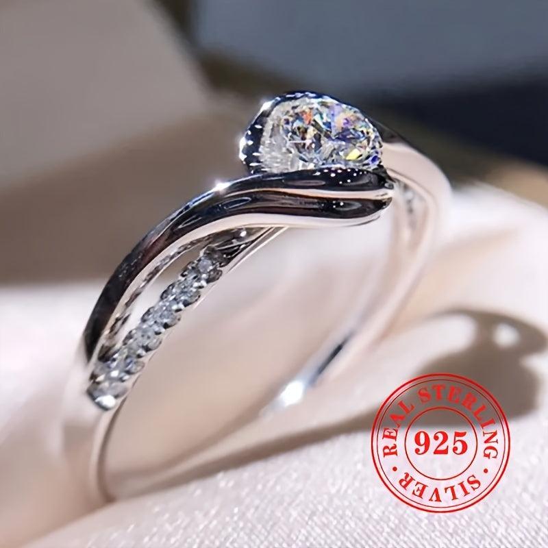 925 Sterling Silver Single Stone Zirconia Ring for Women