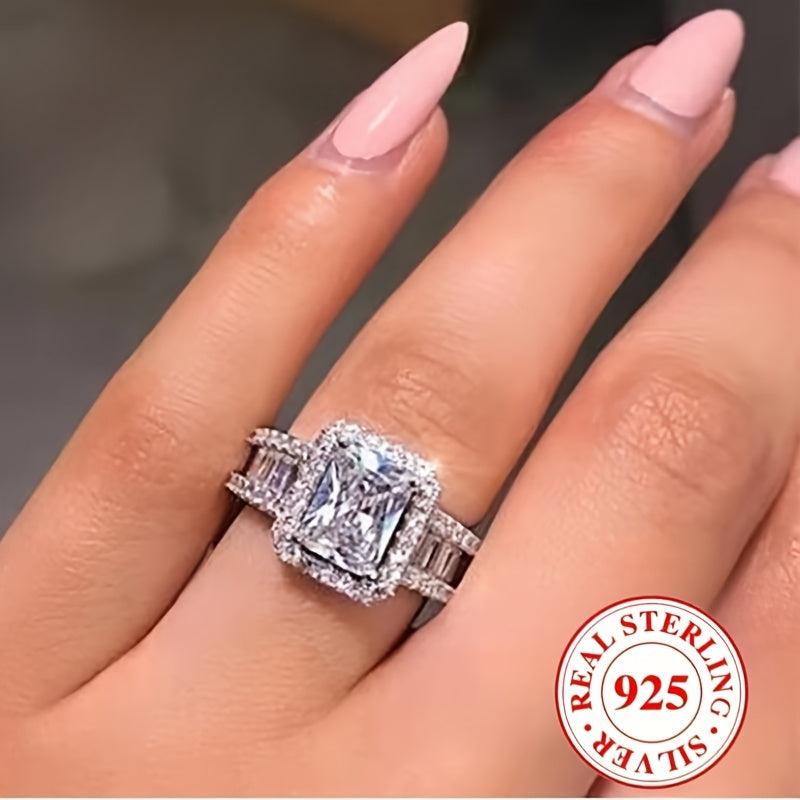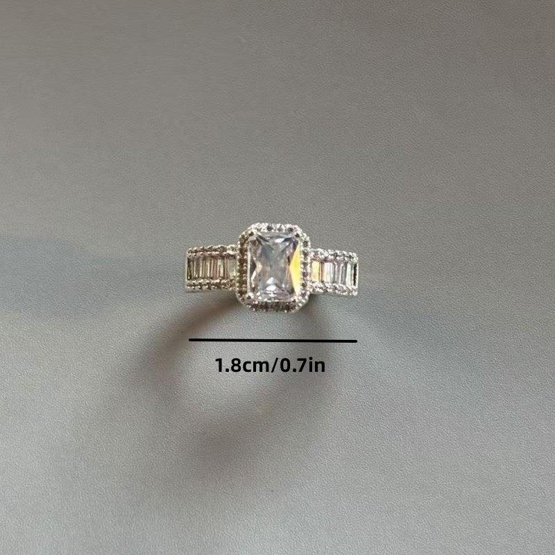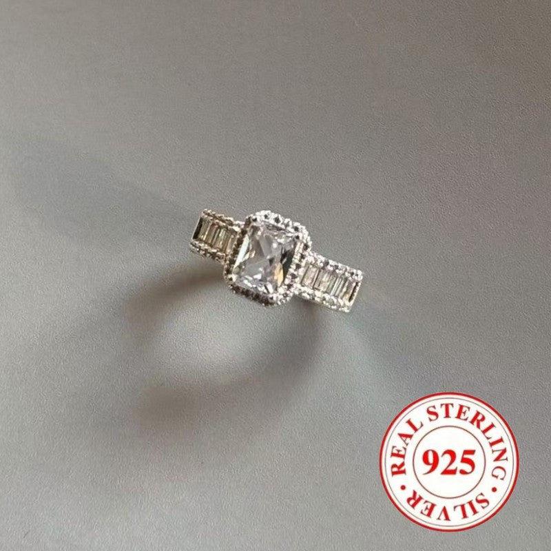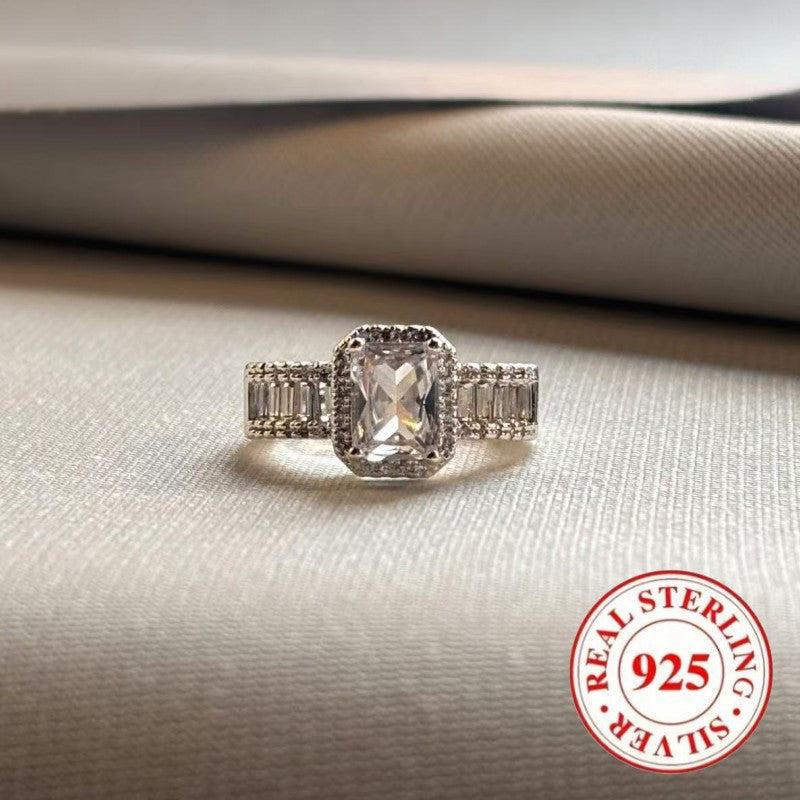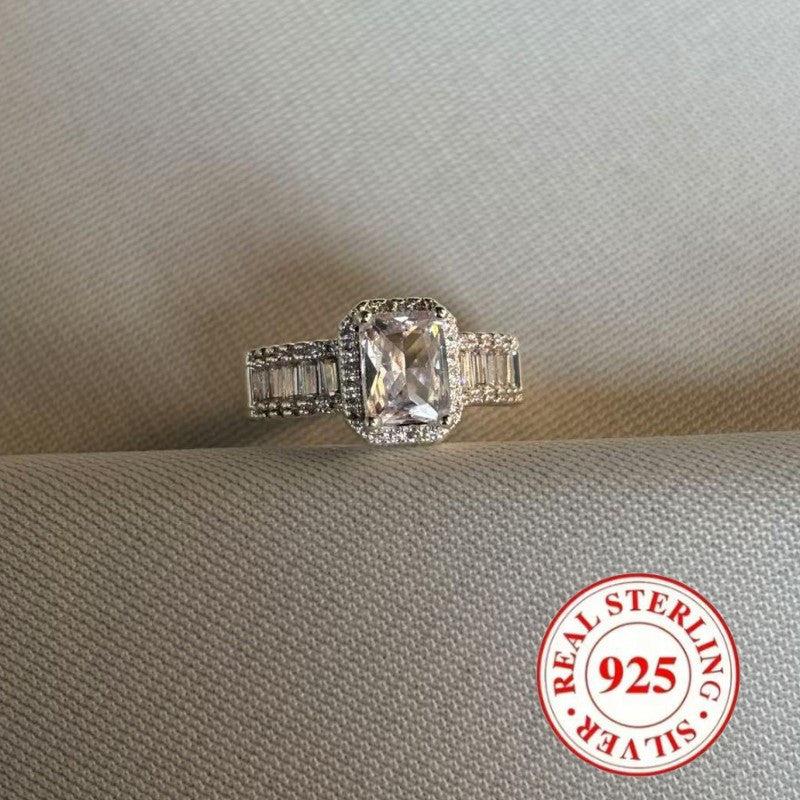 This stunning 925 sterling silver ring features a unique square geometric design, perfect for parties, banquets, and engagements. A timeless piece that will make a beautiful addition to any jewelry collection.