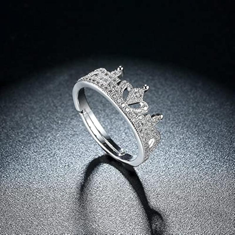 Elegant A5 Crystal Royal Crown ring made with 925 Sterling Plating, adjustable size.