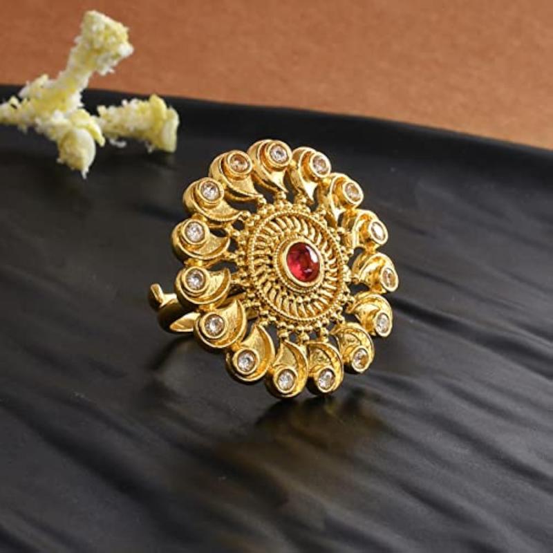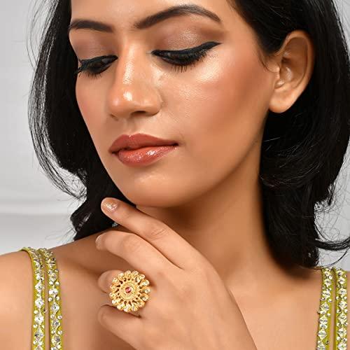 Add a touch of ethnic charm with this stunning red stones ring from Abharan. Perfect for traditional occasions and parties.
