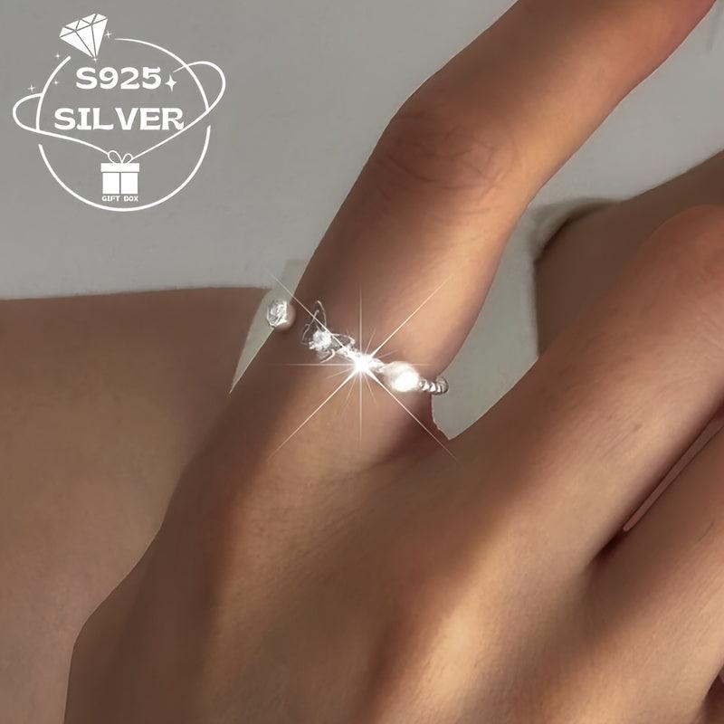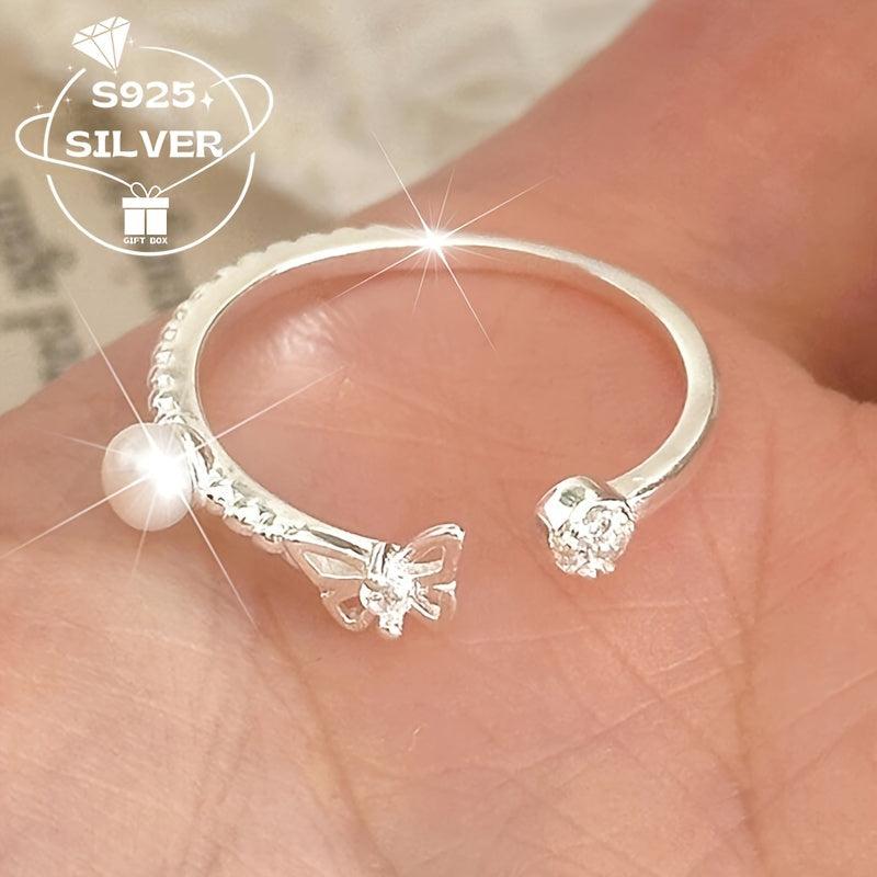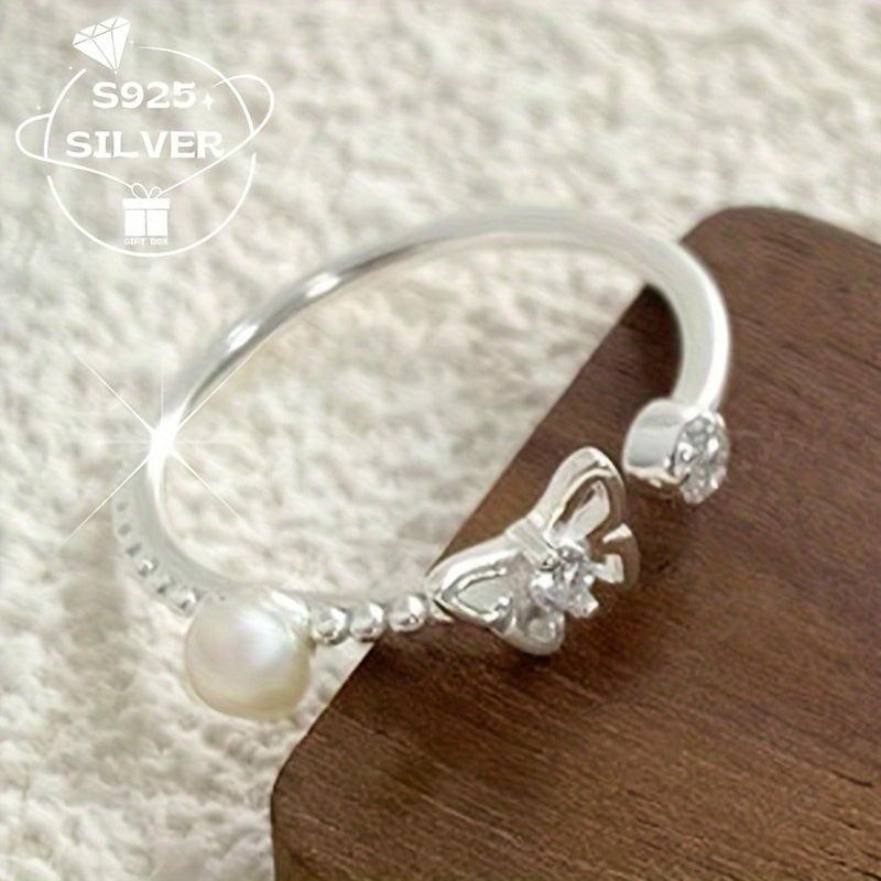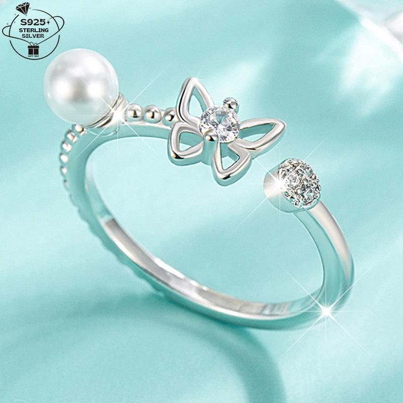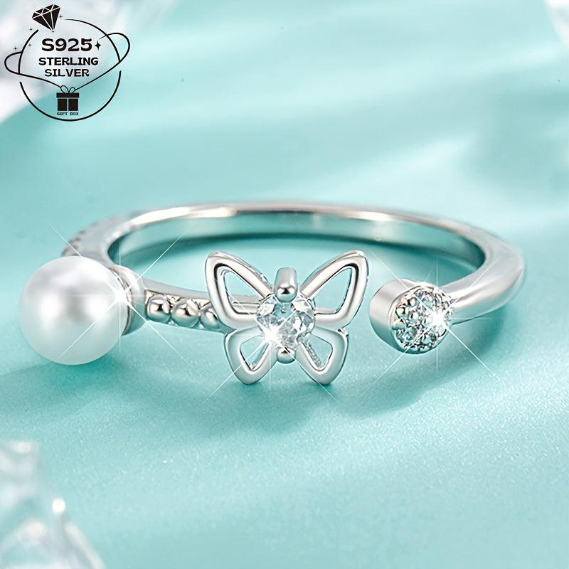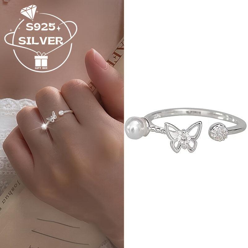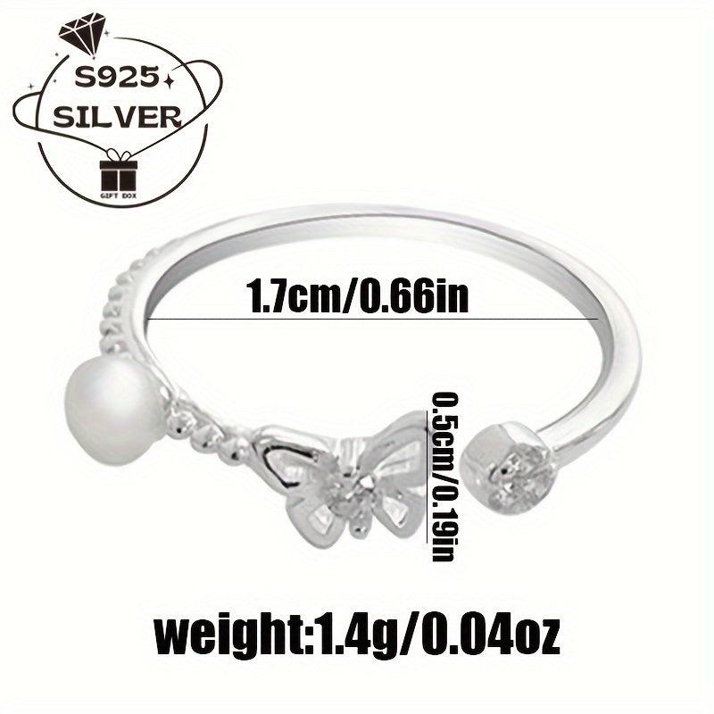 Add a touch of elegance to your look with this adjustable 925 sterling silver ring featuring a freshwater pearl and butterfly charm. This hypoallergenic ring is perfect for both casual attire and special occasions with its retro style design.
