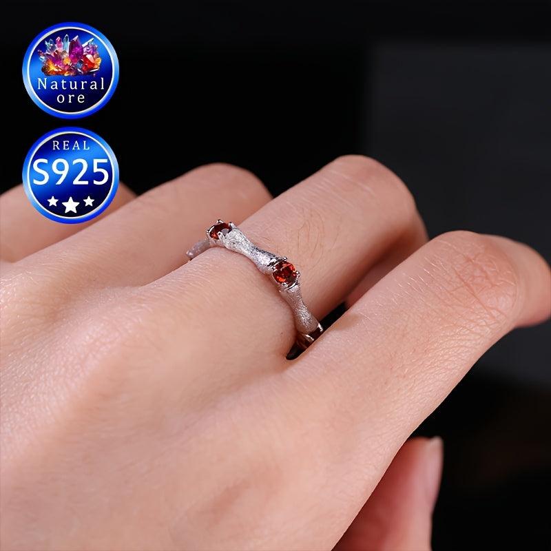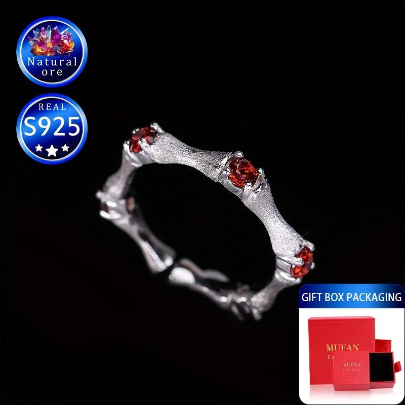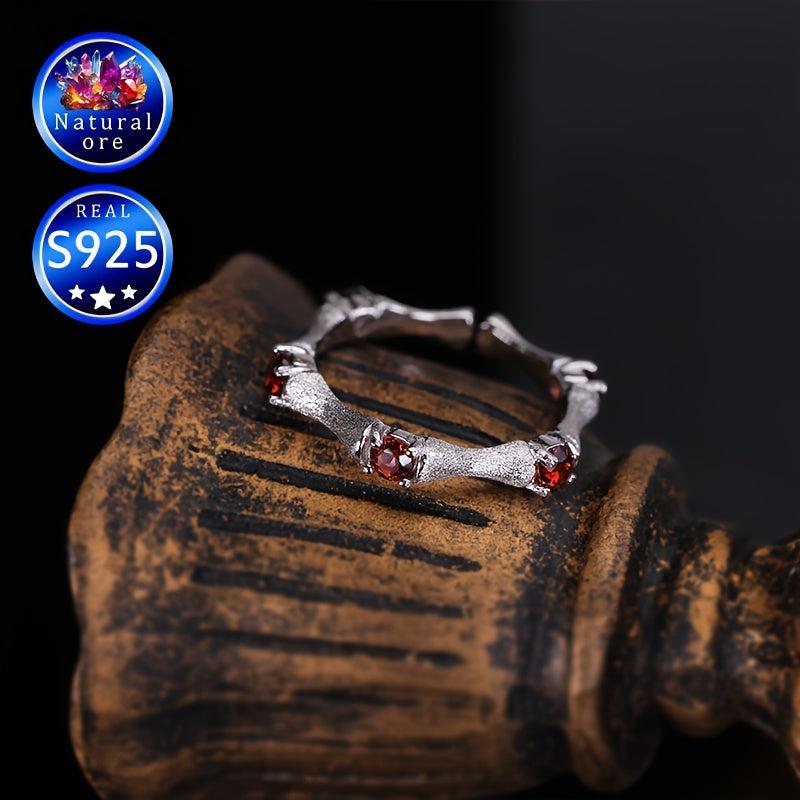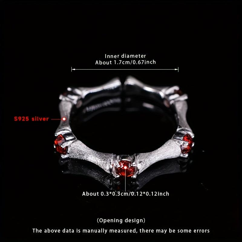 This S925 silver ring features a synthetic gemstone and rhinestone accents. The openwork bamboo knot design makes it suitable for daily wear, dating, work, or travel. It comes in a gift box.
