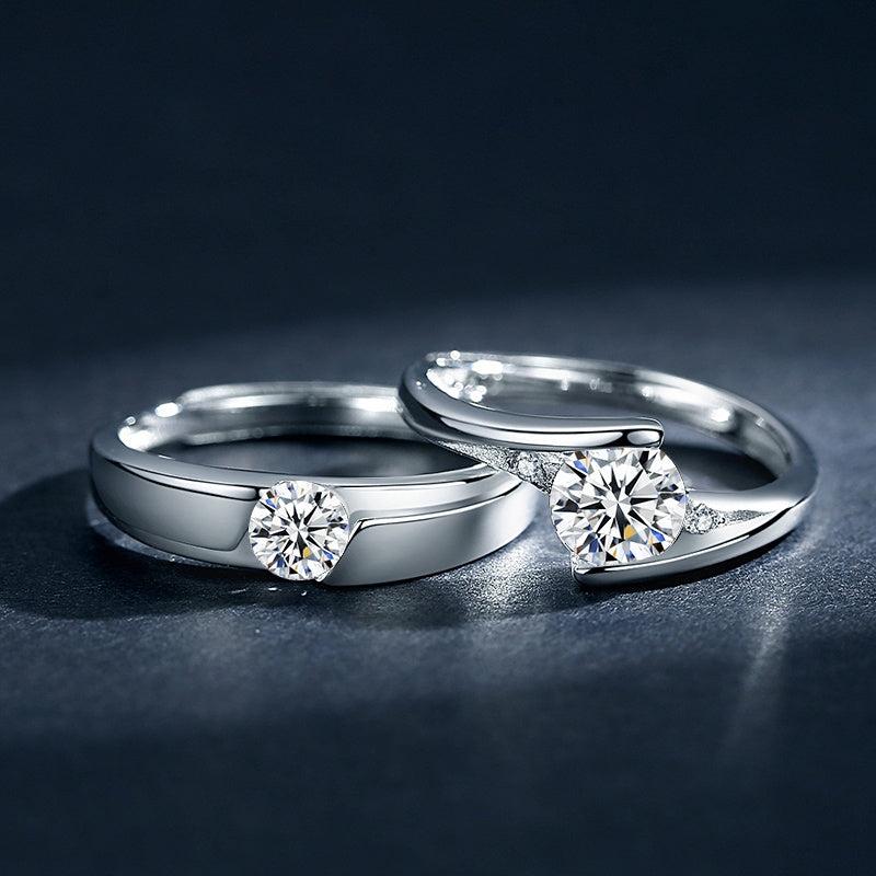 This set includes 2 adjustable couple rings made of 925 sterling silver featuring a 0.5ct moissanite stone. The vintage design adds charm to the rings.